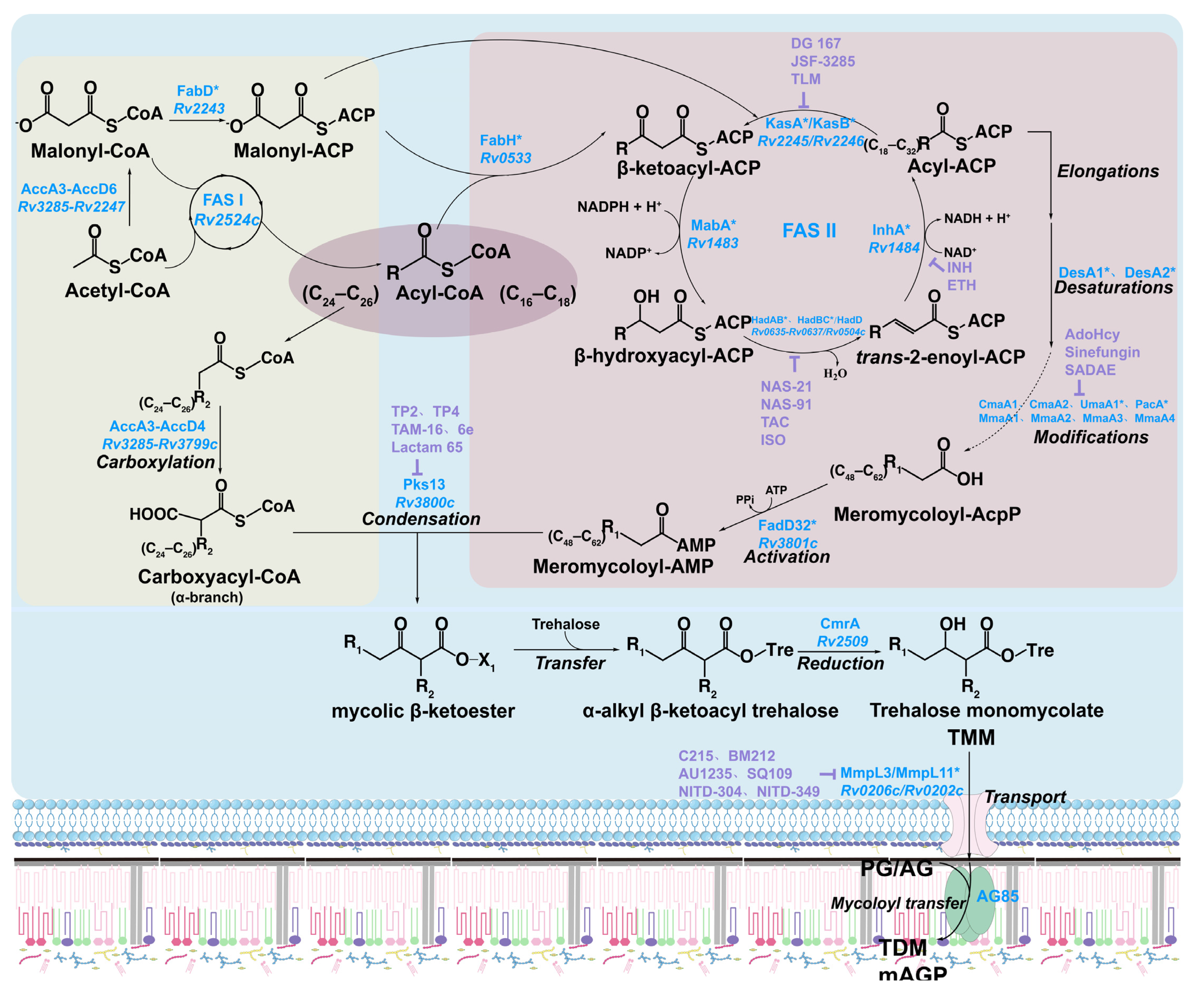 APA StyleZhou, Y., Wang, X., Jia, W., Su, Z., & Cheng, X. (2026). The Biosynthetic Pathway of Mycolic Acids: Dual-Function Targets for Tuberculosis Therapeutics and Green Steroid Drugs Biomanufacturing. Pharmaceutics, 18(1), 44. https://doi.org/10.3390/pharmaceutics18010044
