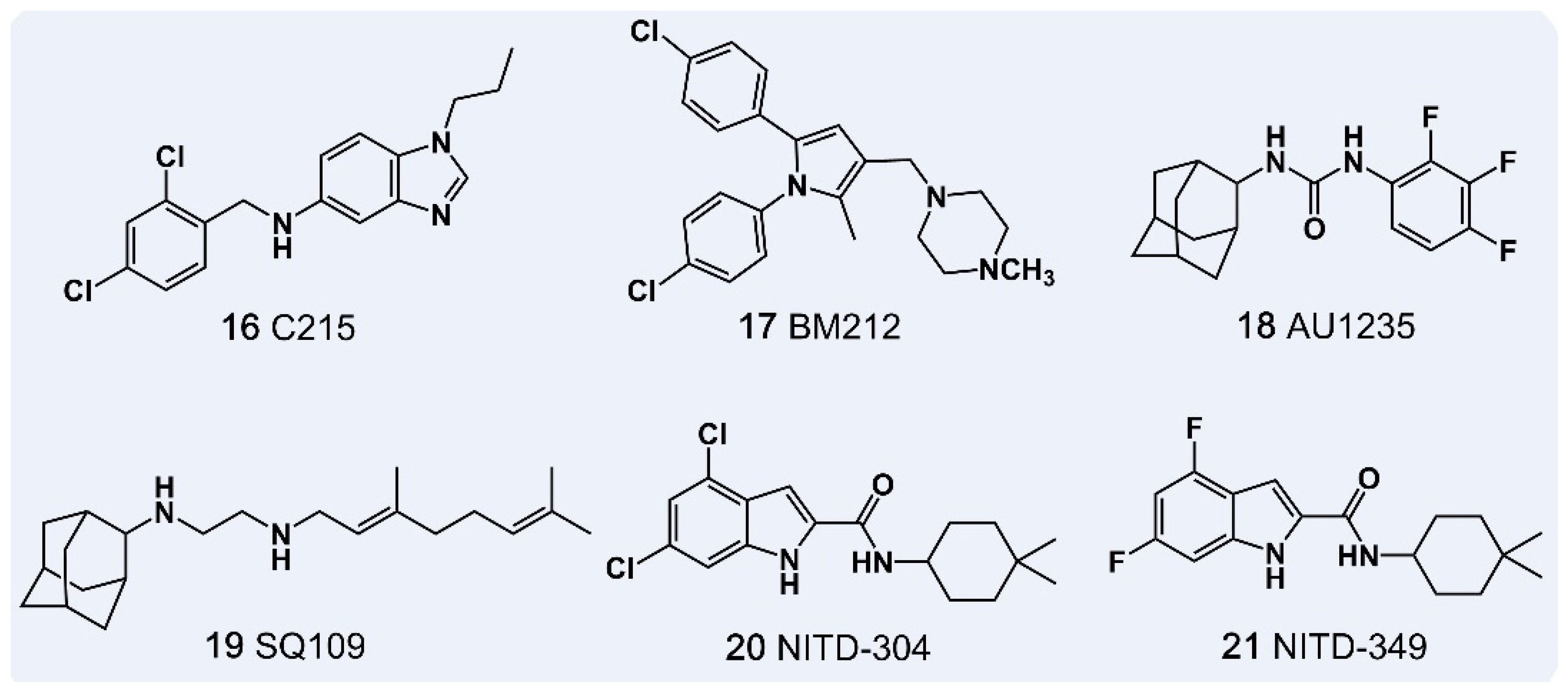 5.1.6. Anti-Tuberculosis Drugs Targeting the Membrane Transporter Protein MmpL
