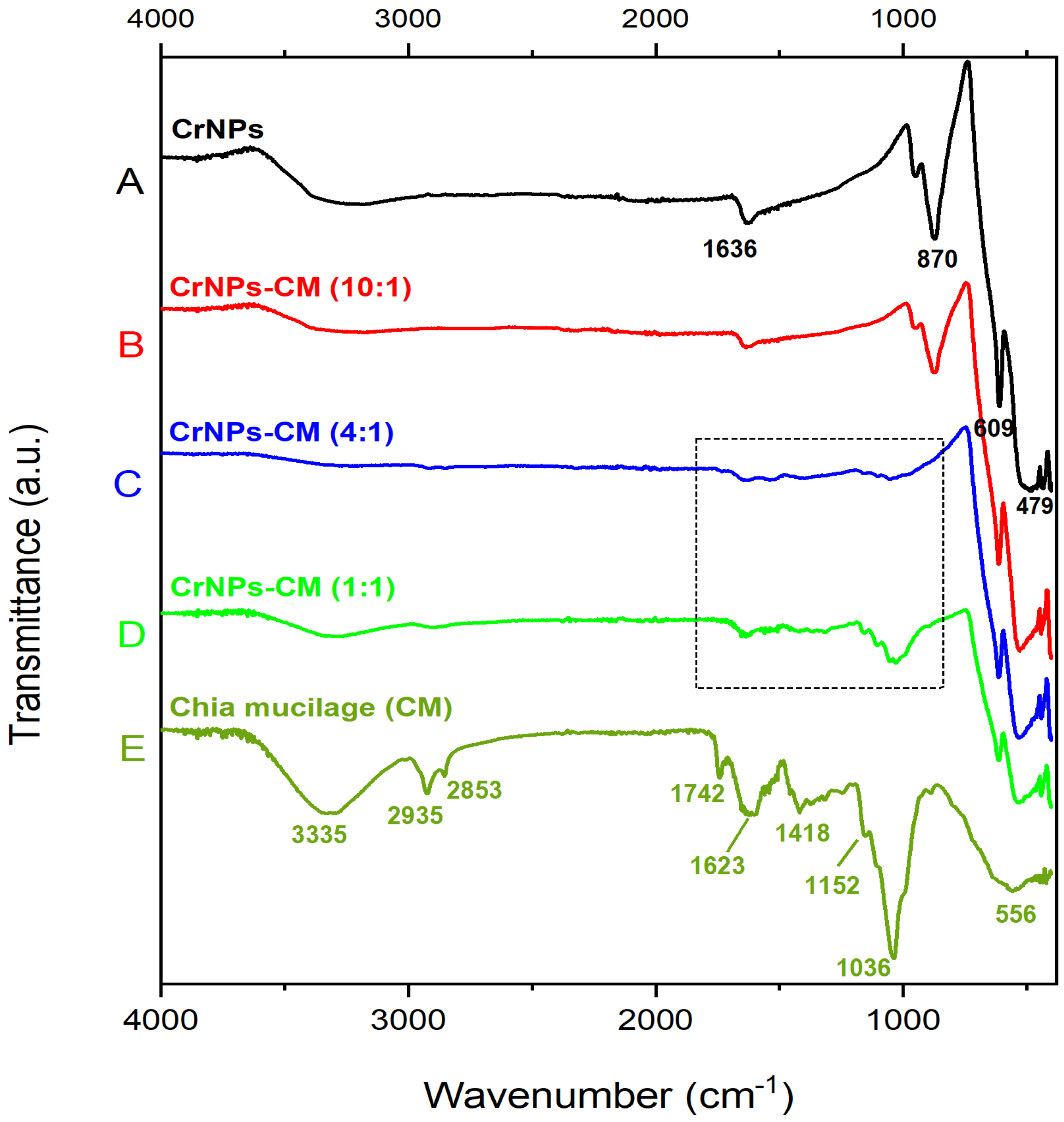 2.2.2. Coating CrNPs with Chia Mucilage Extract