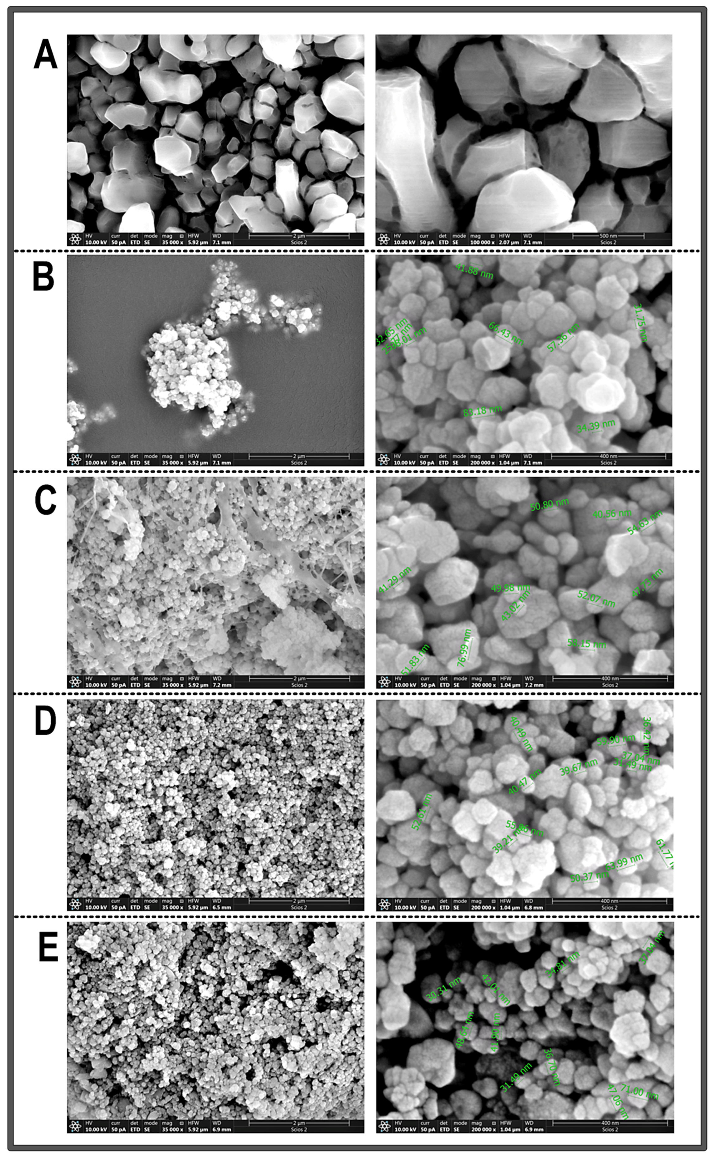 - Jaswal, V.S.; Arora, A.K.; Kinger, M.; Gupta, V.D.; Singh, J. Synthesis and Characterization of Chromium Oxide Nanoparticles. Orient. J. Chem. 2014, 30, 559–566. [Google Scholar] [CrossRef]