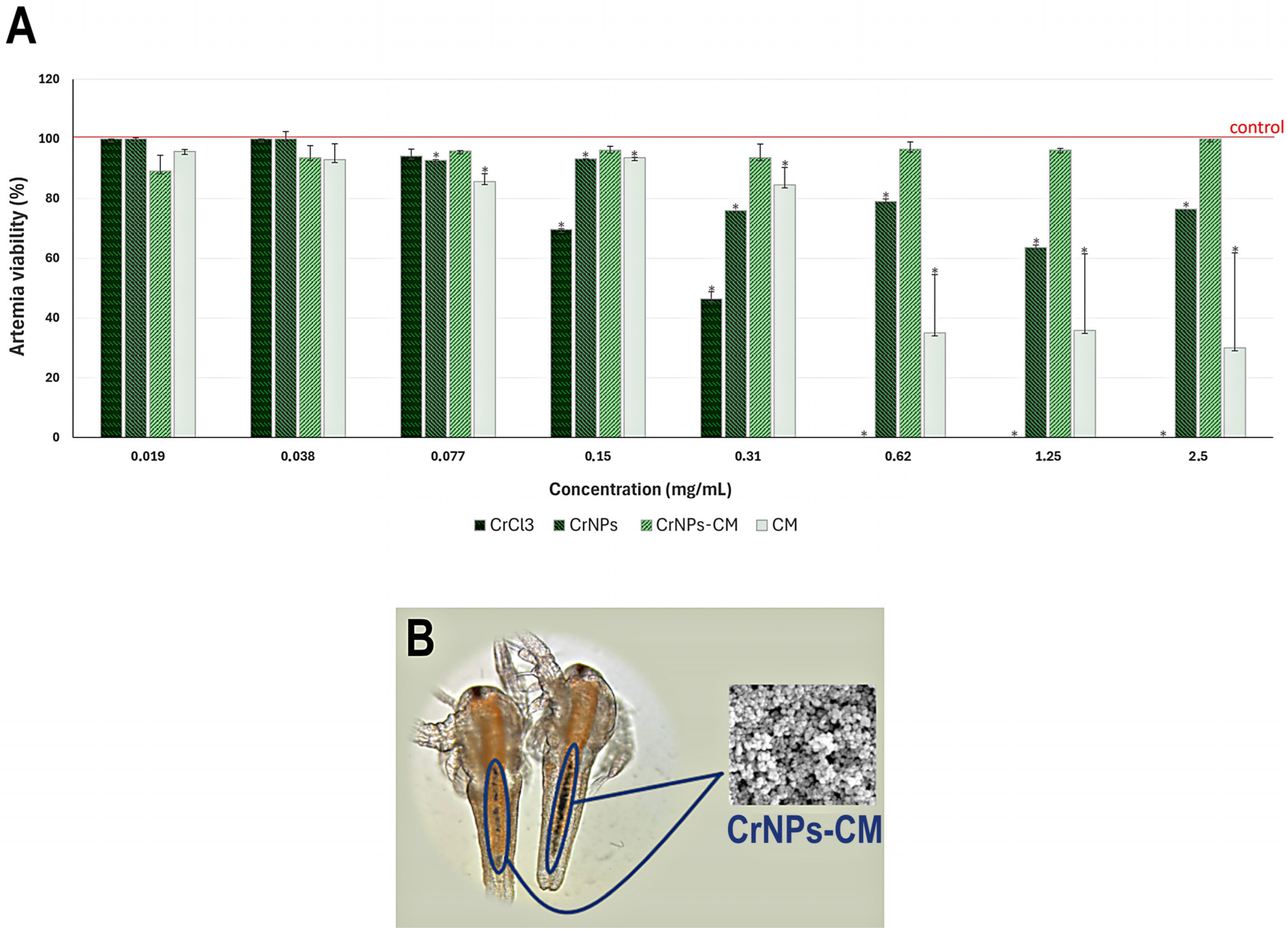 - Rajabi, S.; Ramazani, A.; Hamidi, M.; Naji, T. Artemia Salina as a Model Organism in Toxicity Assessment of Nanoparticles. DARU J. Pharm. Sci. 2015, 23, 20. [Google Scholar] [CrossRef]