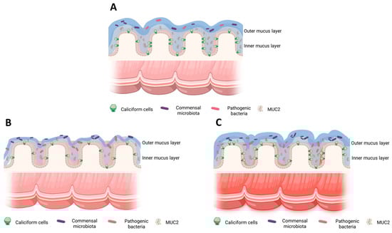 - Naama, M.; Telpaz, S.; Awad, A.; Ben-Simon, S.; Harshuk-Shabso, S.; Modilevsky, S.; Rubin, E.; Sawaed, J.; Zelik, L.; Zigdon, M.; et al. Autophagy controls mucus secretion from intestinal goblet cells by alleviating ER stress. Cell Host Microbe 2023, 31, 433–446.e4. [Google Scholar] [CrossRef]