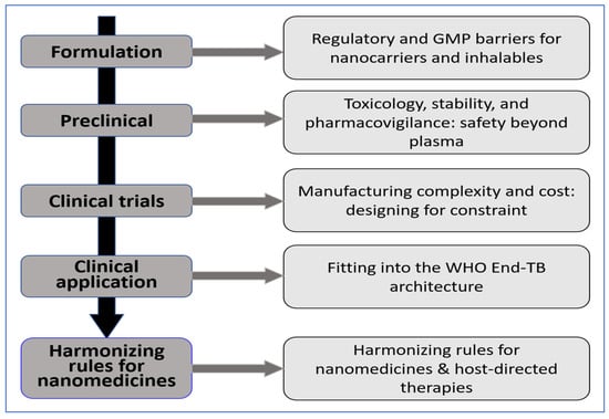 - Singh, A.V.; Bhardwaj, P.; Upadhyay, A.K.; Pagani, A.; Upadhyay, J.; Bhadra, J.; Tisato, V.; Thakur, M.; Gemmati, D.; Mishra, R. Navigating regulatory challenges in molecularly tailored nanomedicine. Explor. BioMat-X 2024, 1, 124–134. [Google Scholar] [CrossRef]