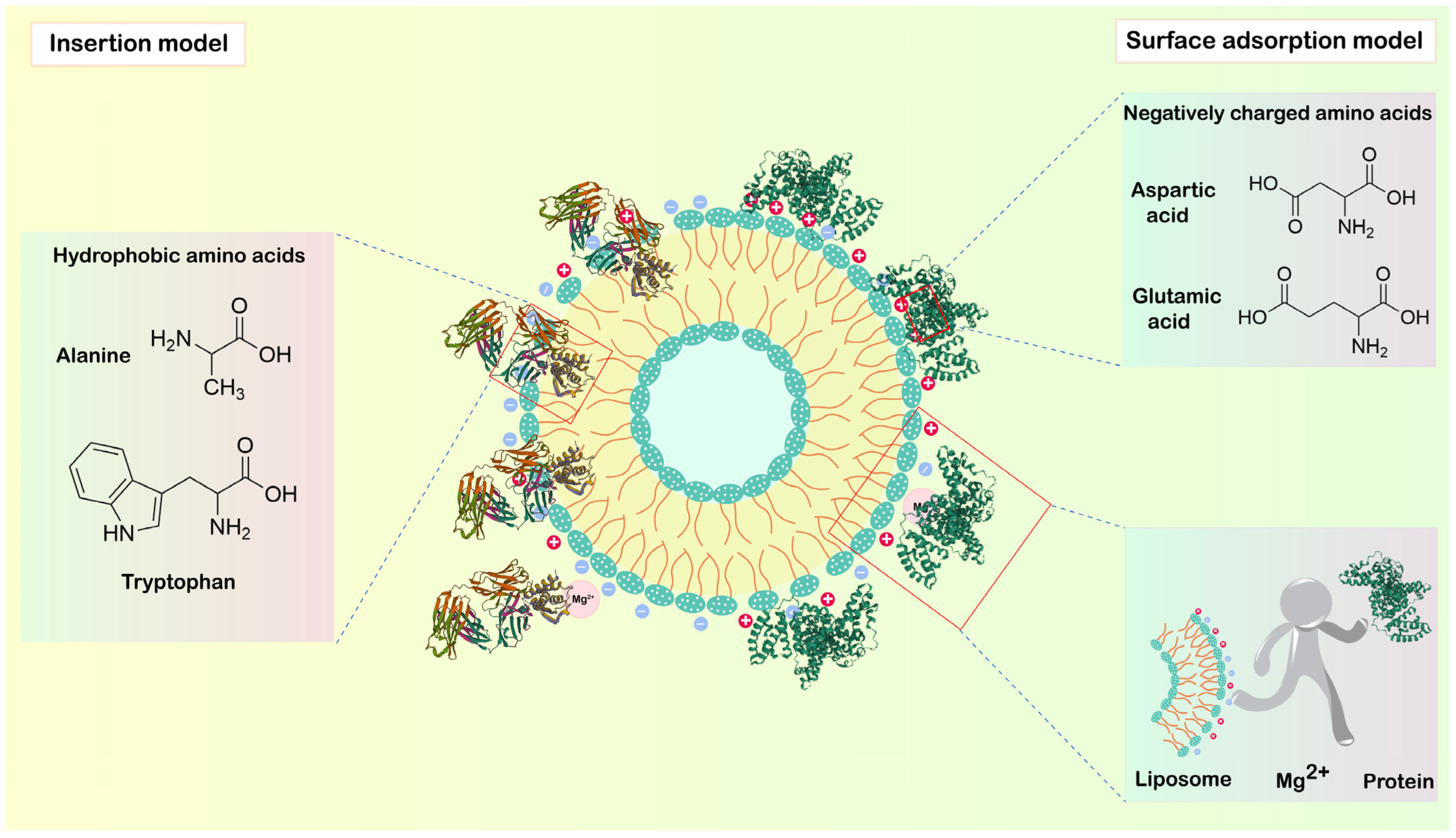 - Huang, Y.; Gao, Y.; Lin, Y.; Li, Y.; Xiong, S.; Guo, X.; Wu, C.; Pan, X.; Wang, W.; Zhao, Z.; et al. “Connect” or “drag”? The impact of physiologically relevant inorganic ion pairs on the protein corona adsorption onto liposomes. Chin. Chem. Lett. 2026, 37, 111014. [Google Scholar] [CrossRef]