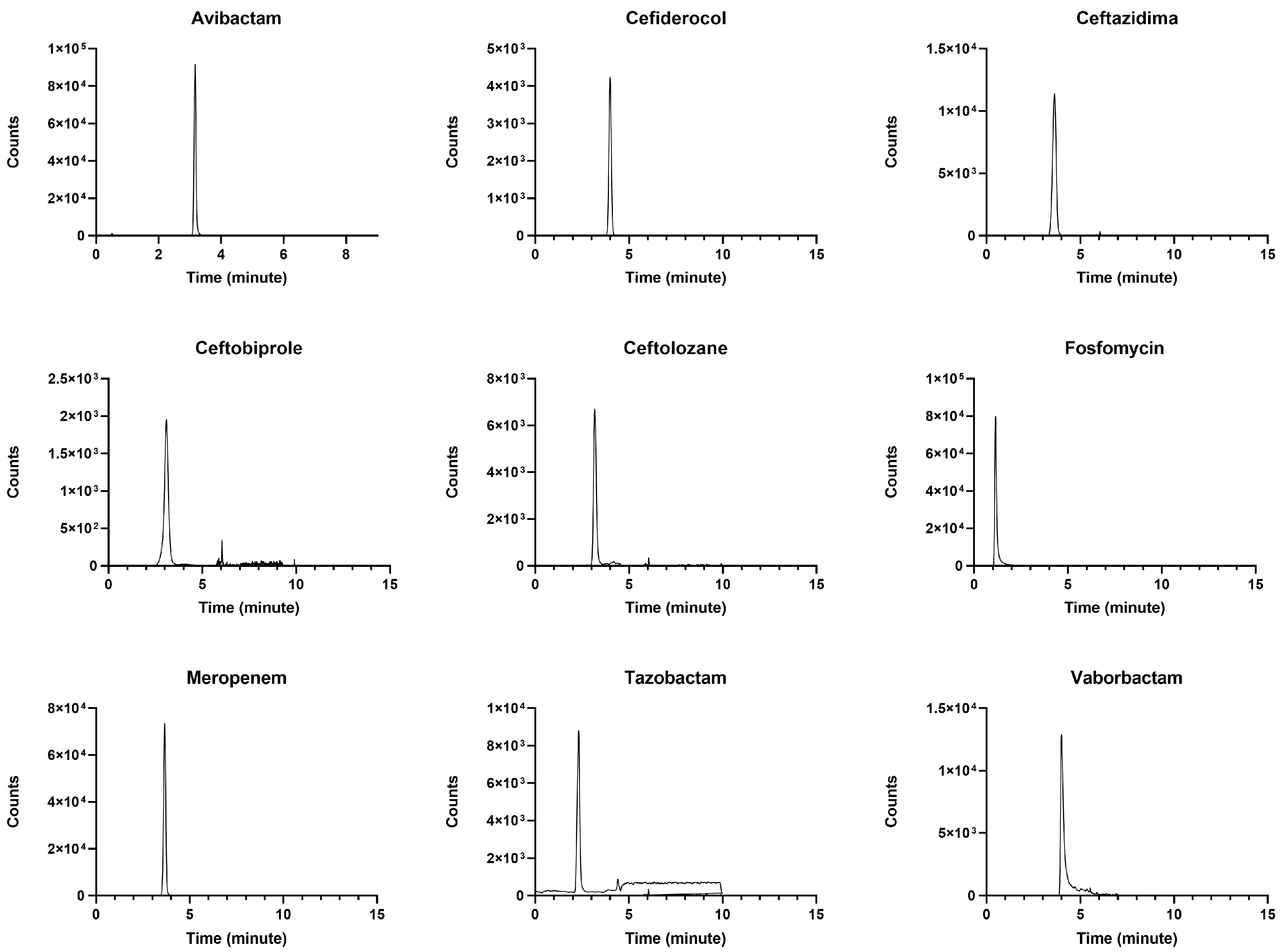 - Sillén, H.; Mitchell, R.; Sleigh, R.; Mainwaring, G.; Catton, K.; Houghton, R.; Glendining, K. Determination of Avibactam and Ceftazidime in Human Plasma Samples by LC-MS. Bioanalysis 2015, 7, 1423–1434. [Google Scholar] [CrossRef] [PubMed]
