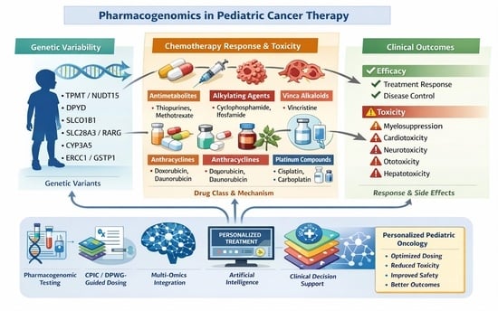 APA StyleDushimova, Z., Saliev, T., Bazarbayeva, A., Nurzhanova, G., Baibadilova, A., Abdilova, G., & Fakhradiyev, I. (2026). Pharmacogenomics of Antineoplastic Therapy in Children: Genetic Determinants of Toxicity and Efficacy. Pharmaceutics, 18(2), 165. https://doi.org/10.3390/pharmaceutics18020165
