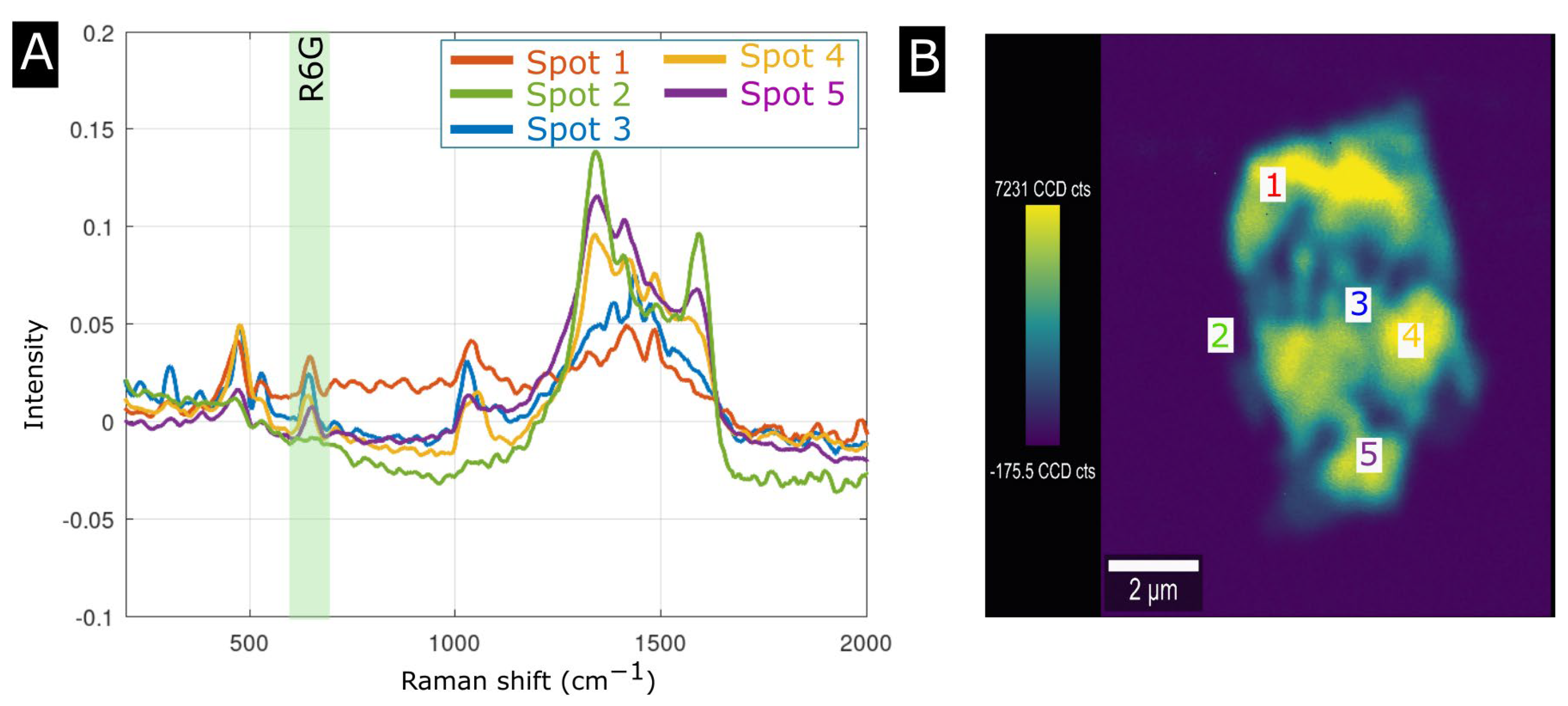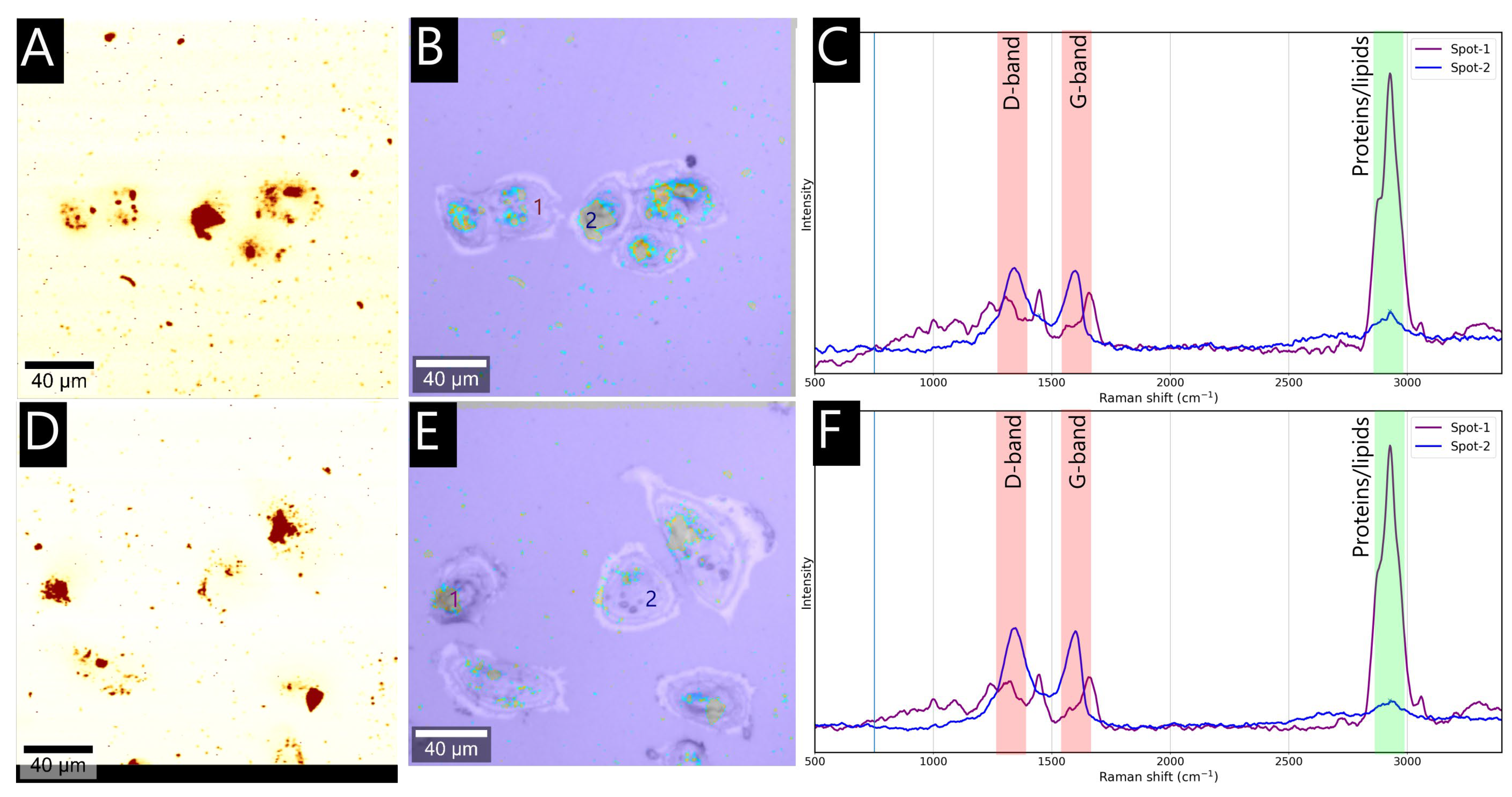 2.5.4. Characterization and Study of the GO@Carb@Au Using Vibrational Spectroscopy