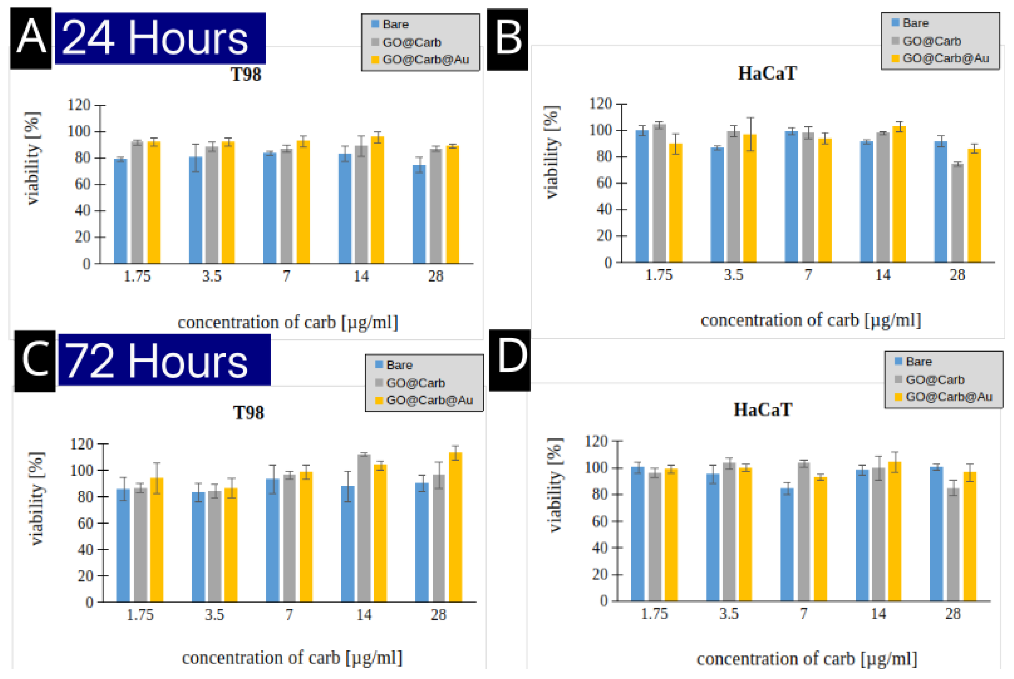 3.1. Morphological and Chemical Characterization of the GO@Carb@Au Nanoplatforms