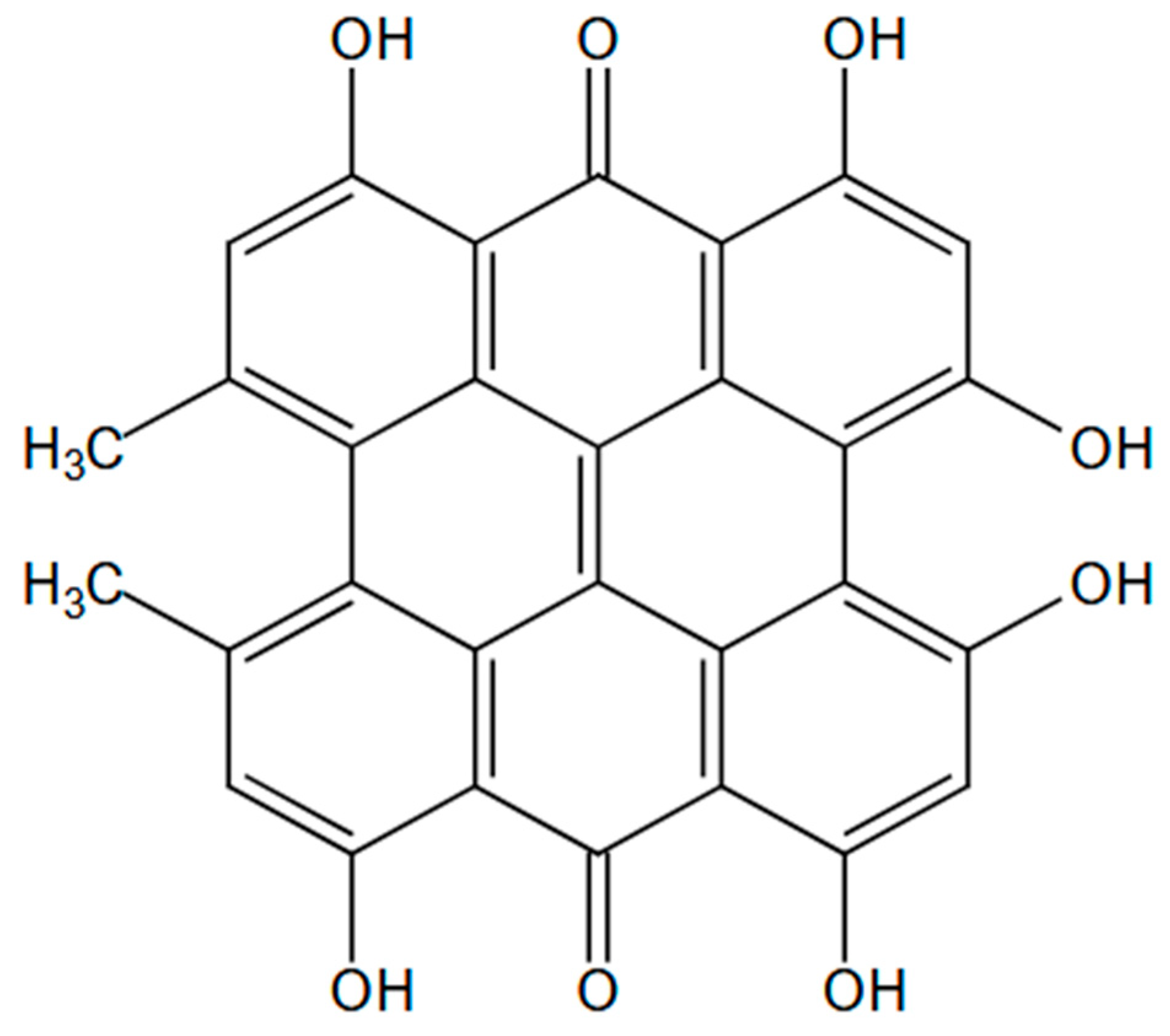 - Jendželovská, Z.; Jendželovský, R.; Kuchárová, B.; Fedoročko, P. Hypericin in the light and in the dark: Two sides of the same coin. Front. Plant Sci. 2016, 7, 560. [Google Scholar] [CrossRef] [PubMed]