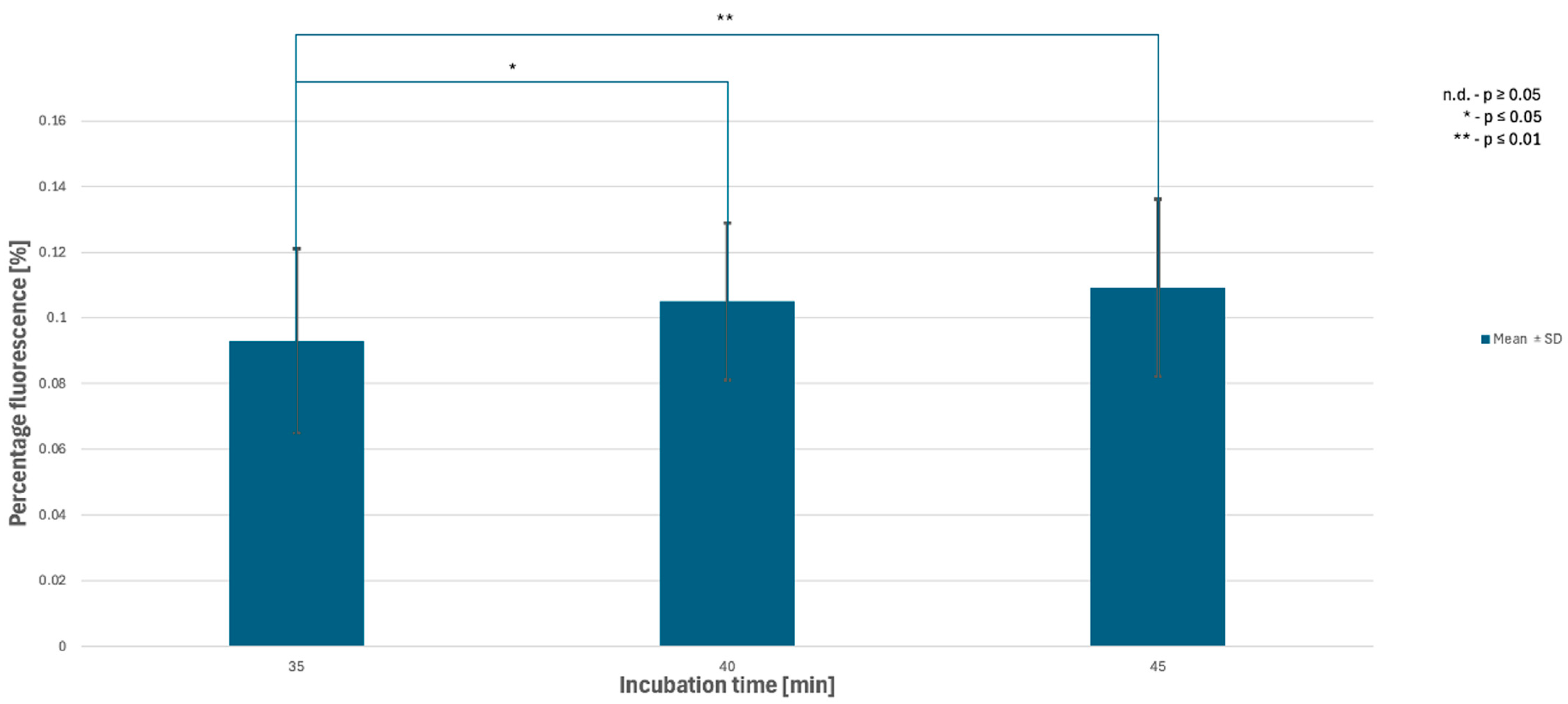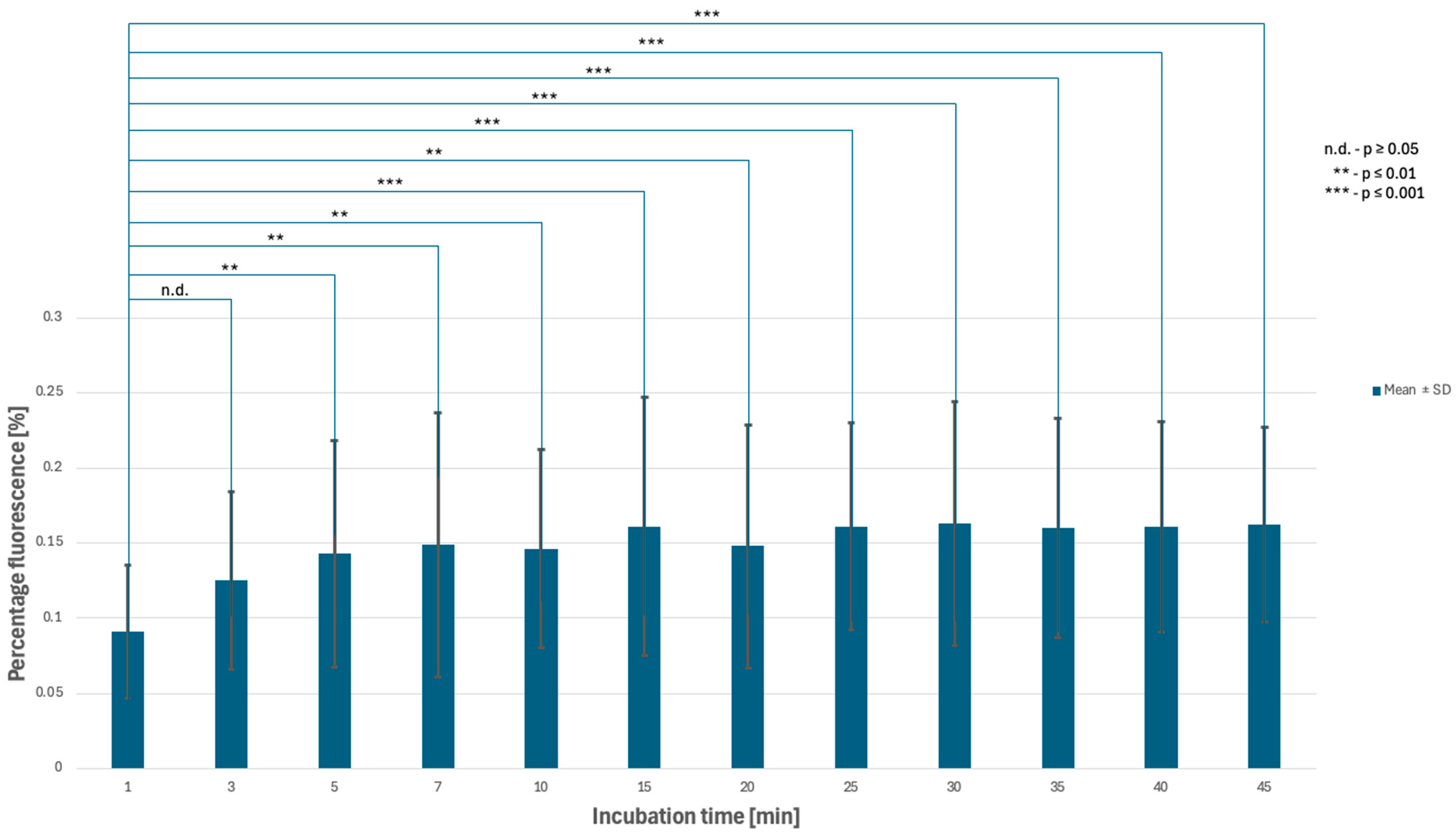 - Wiench, R.; Nowicka, J.; Pajączkowska, M.; Kuropka, P.; Skaba, D.; Kruczek-Kazibudzka, A.; Kuśka-Kiełbratowska, A.; Grzech-Leśniak, K. Influence of incubation time on ortho-toluidine blue mediated antimicrobial photodynamic therapy directed against selected Candida strains: An in vitro study. Int. J. Mol. Sci. 2021, 22, 10971. [Google Scholar] [CrossRef]