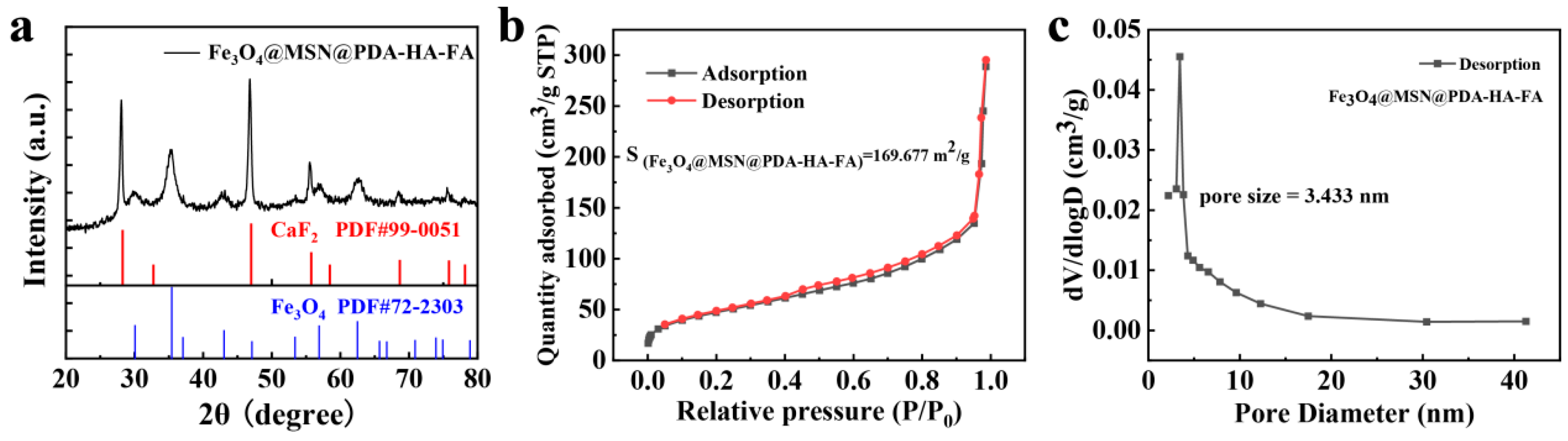2.4. Preparation of Fe3O4@MSN@PDA-HA-FA