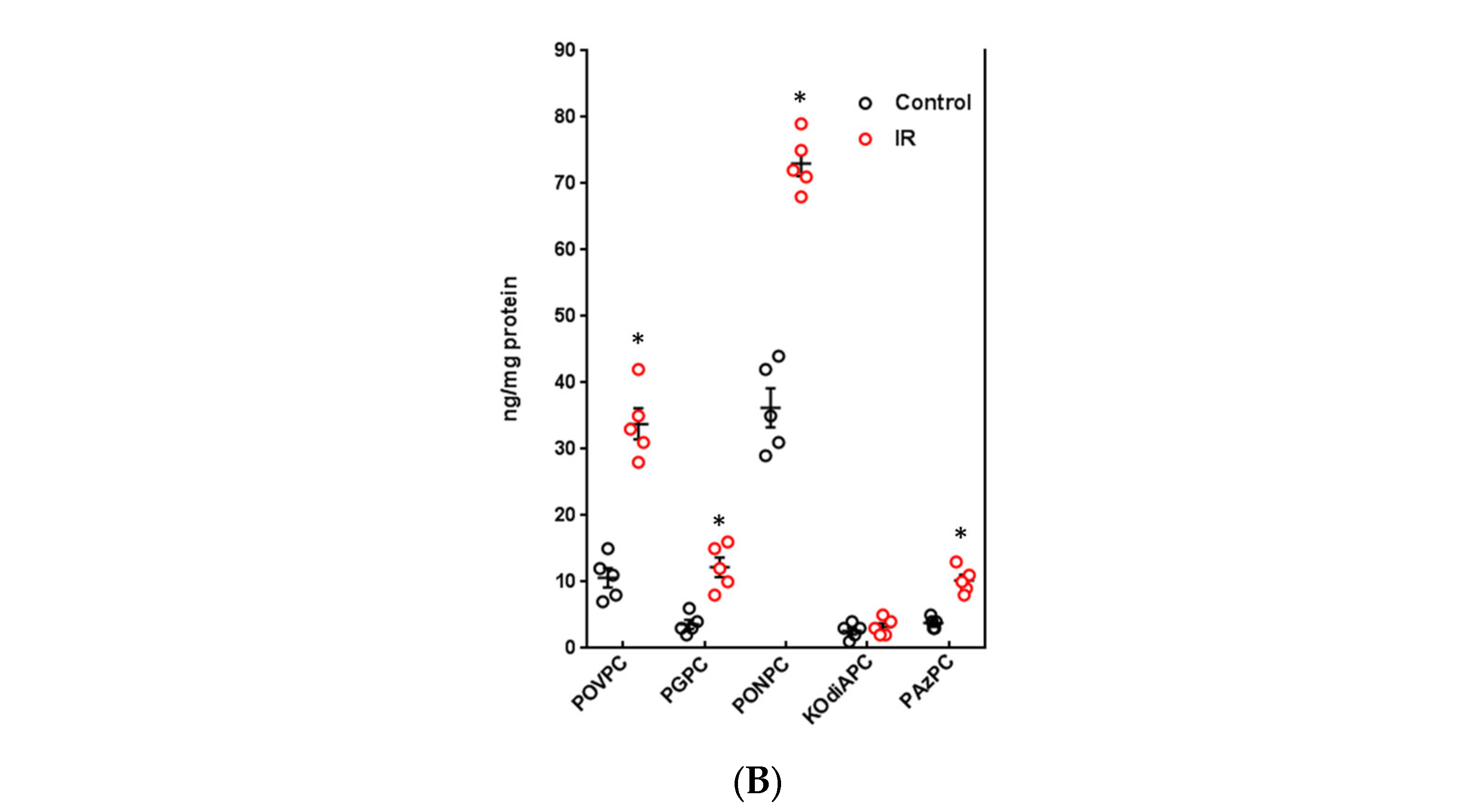 3.1. Oxidized Phospholipids (OxPL) Are Induced in Mouse Neuronal Cells Following Ischemia and Reperfusion Injury (IRI)