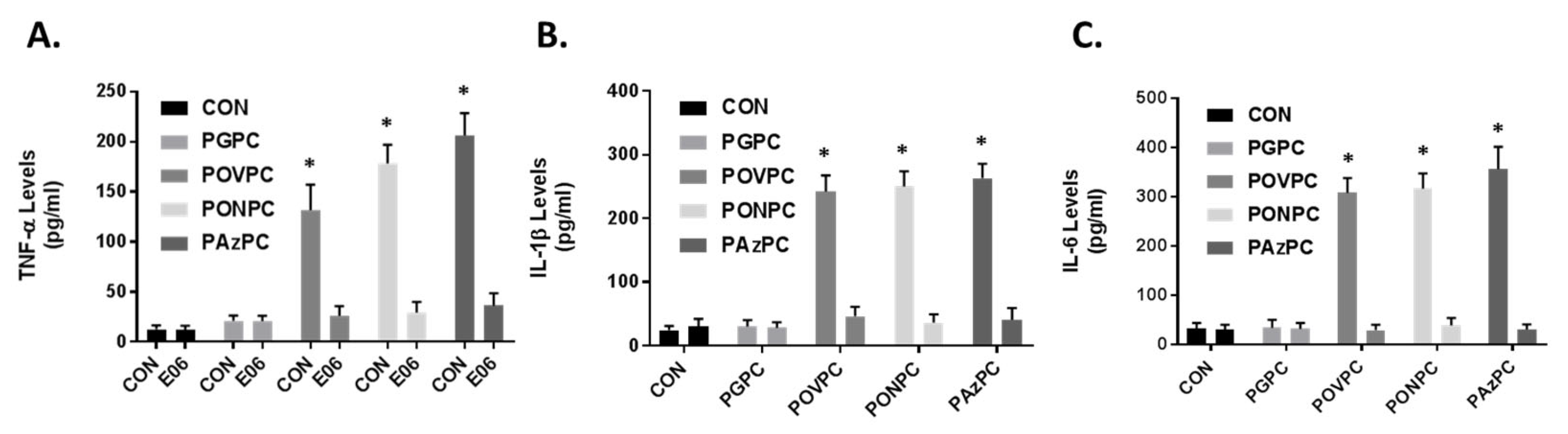 3.7. OxPLs Induce Cytokine Expression in the Microglial Cell In Vitro