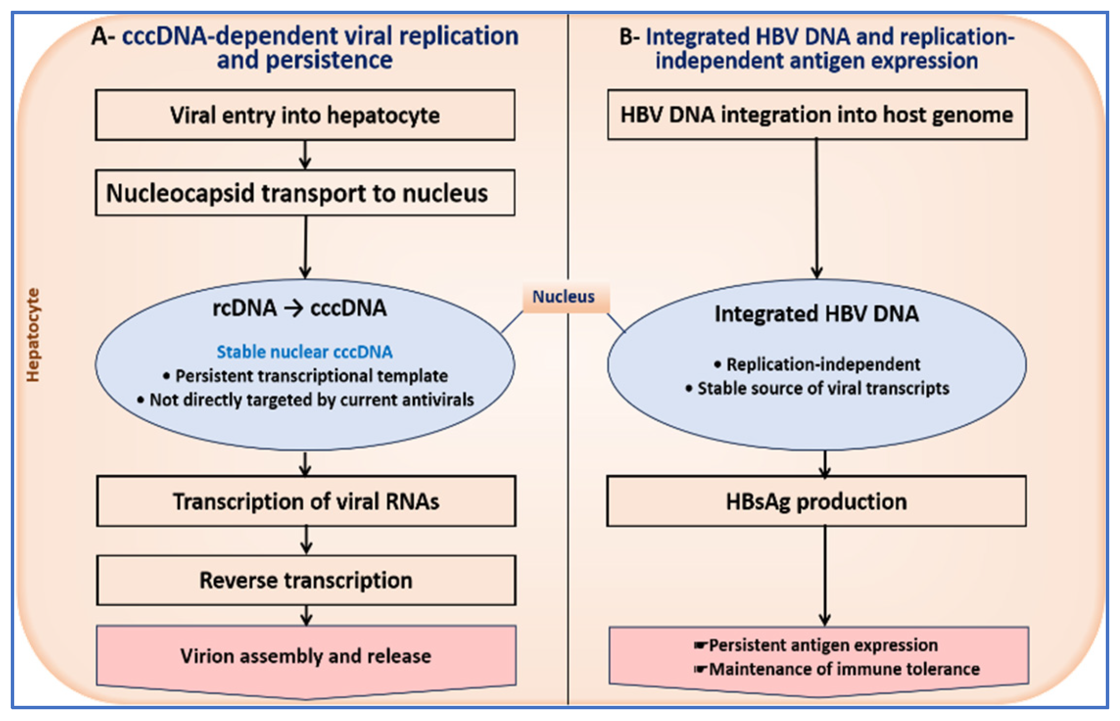 - Boonstra, A.; Sari, G. HBV cccDNA: The Molecular Reservoir of Hepatitis B Persistence and Challenges to Achieve Viral Eradication. Biomolecules 2025, 15, 62. [Google Scholar] [CrossRef] [PubMed]