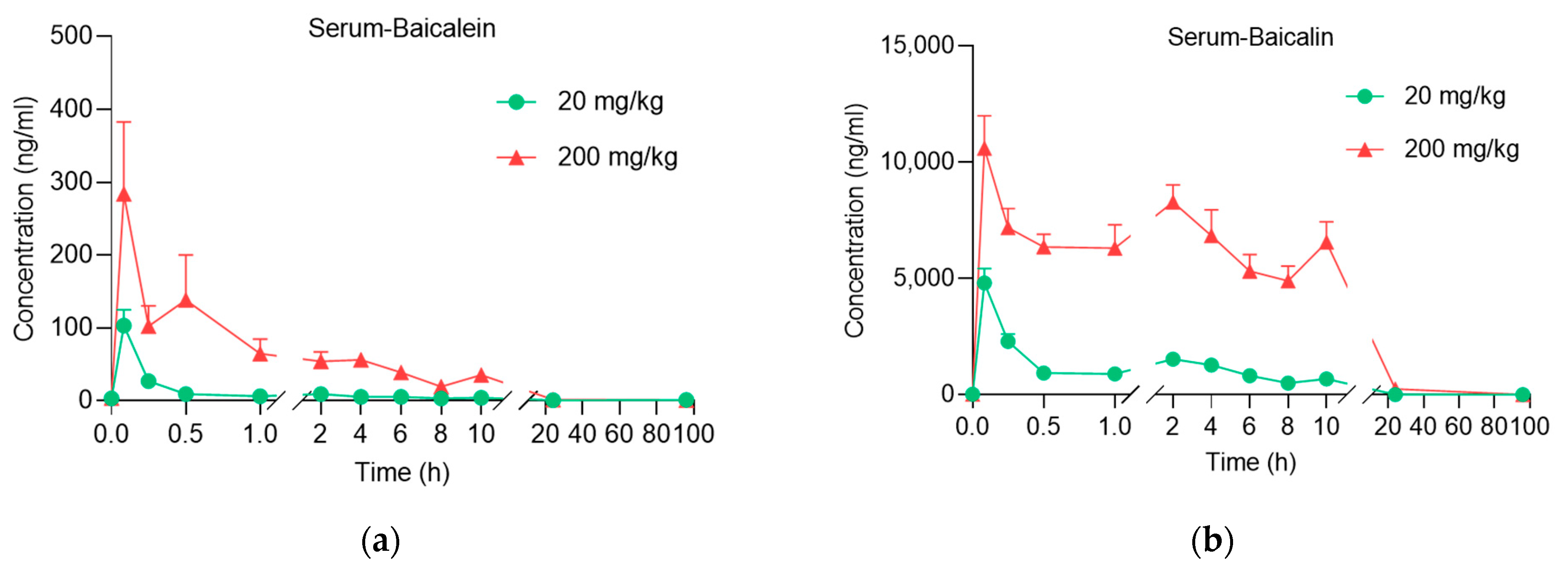 - Tian, S.; He, G.; Song, J.; Wang, S.; Xin, W.; Zhang, D.; Du, G. Pharmacokinetic study of baicalein after oral administration in monkeys. Fitoterapia 2012, 83, 532–540. [Google Scholar] [CrossRef]