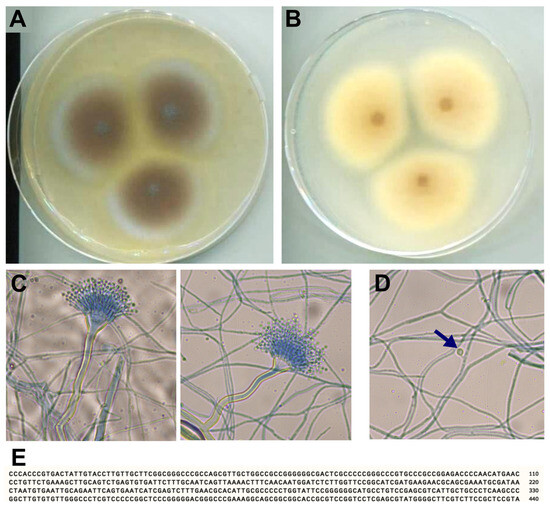 - Samson, R.A.; Visagie, C.M.; Houbraken, J.; Hong, S.-B.; Hubka, V.; Klaassen, C.H.W.; Perrone, G.; Seifert, K.A.; Susca, A.; Tanney, J.B.; et al. Phylogeny, Identification and Nomenclature of the Genus Aspergillus. Stud. Mycol. 2014, 78, 141–173. [Google Scholar] [CrossRef]