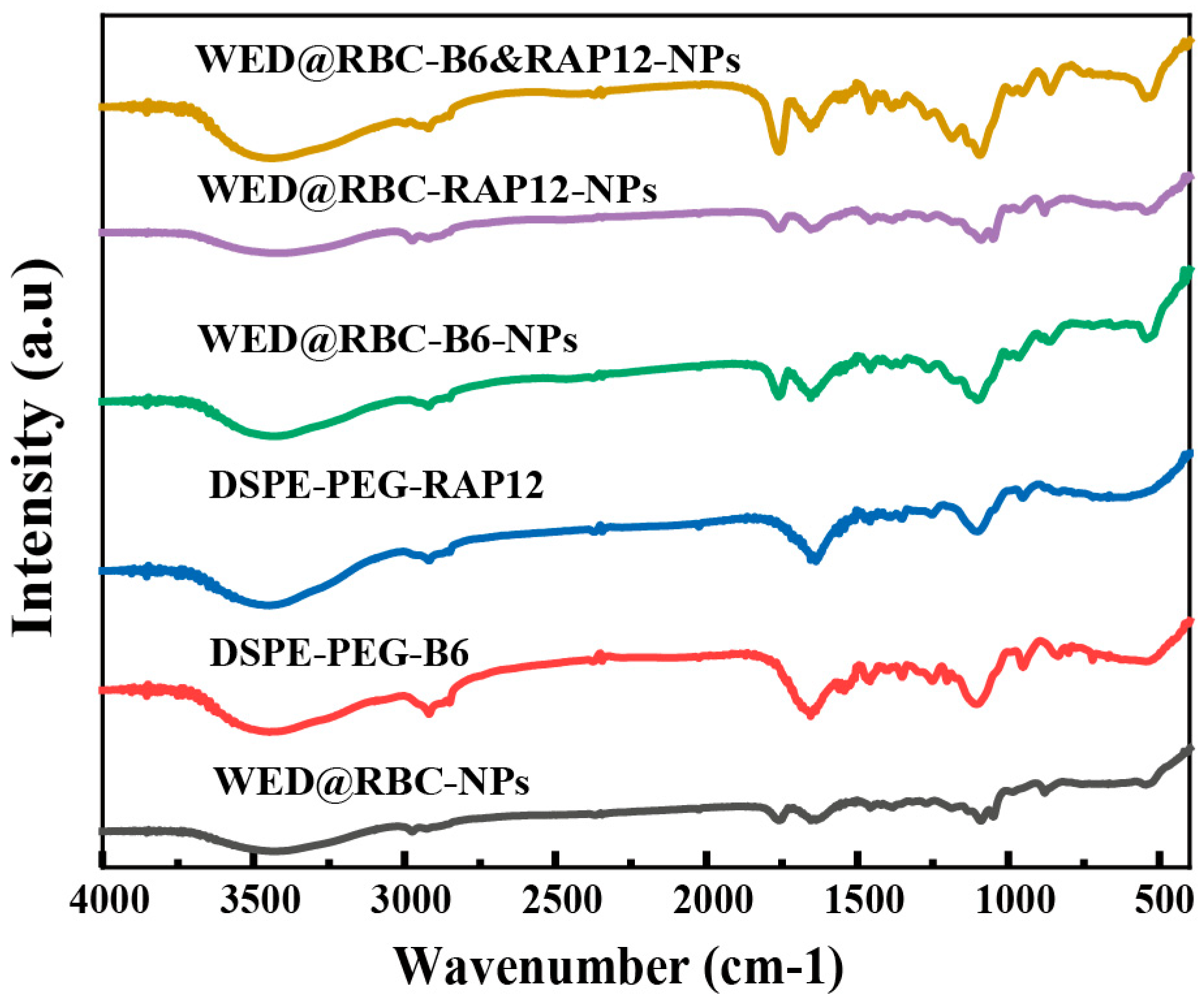 2.5. Preparation of WED@RBC-B6&RAP12-NPs