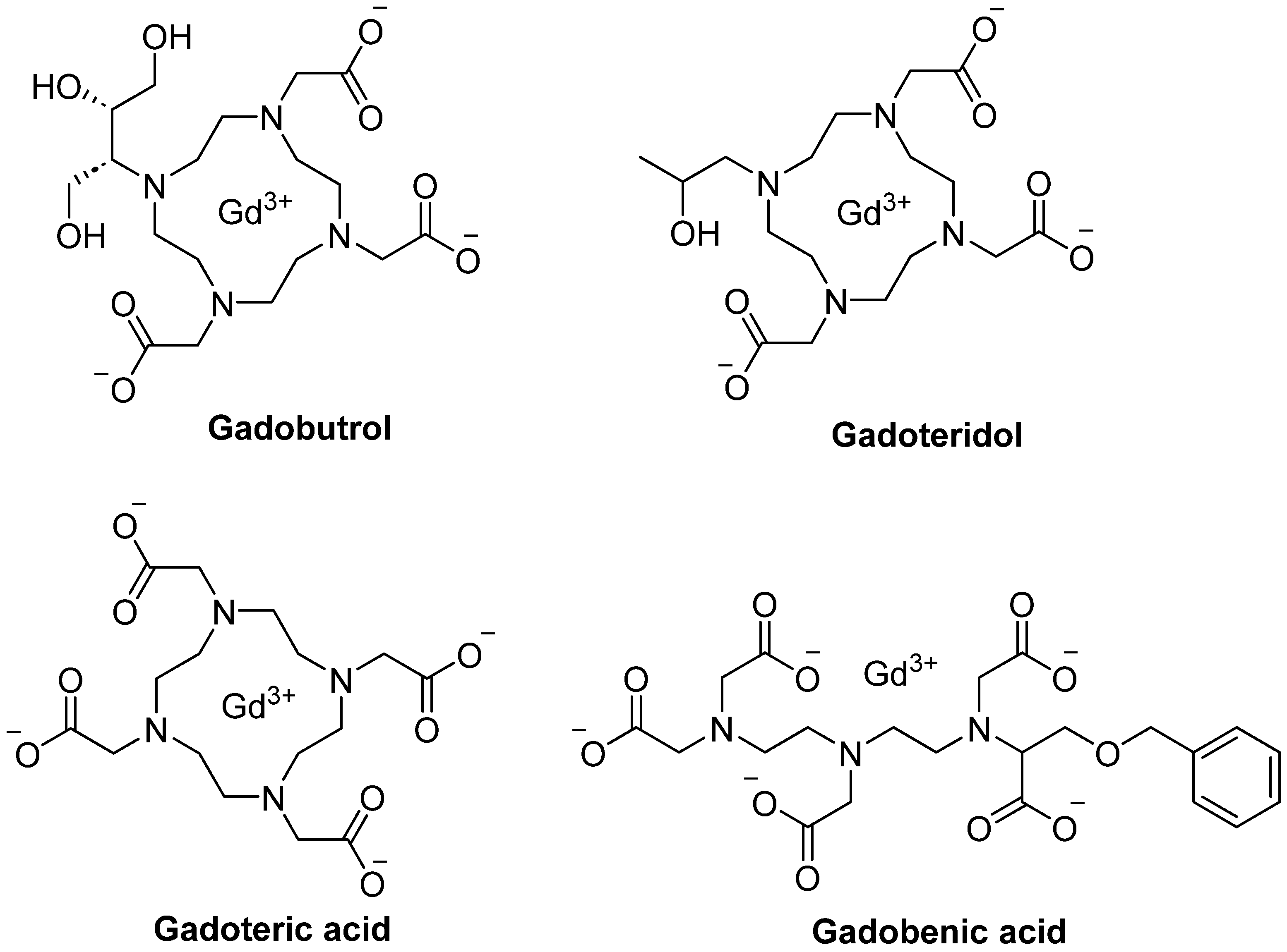 - Le Fur, M.; McDonald, R.J.; Murray, D.L.; Thielen, K.R.; Eckel, L.J.; Jentoft, M.E.; Kallmes, D.F.; Widrick, J.J.; Toland, J.A.; Wagner, B.; et al. Gadolinium-based Contrast Agent Biodistribution and Speciation in Rats and Humans: Comparison of Gadoterate, Gadoteridol, Gadobutrol, and Gadobenate Using MRI, Mass Spectrometry, Elemental Imaging, and Electron Paramagnetic Resonance Spectroscopy. Radiology 2023, 309, e230984. [Google Scholar] [CrossRef]