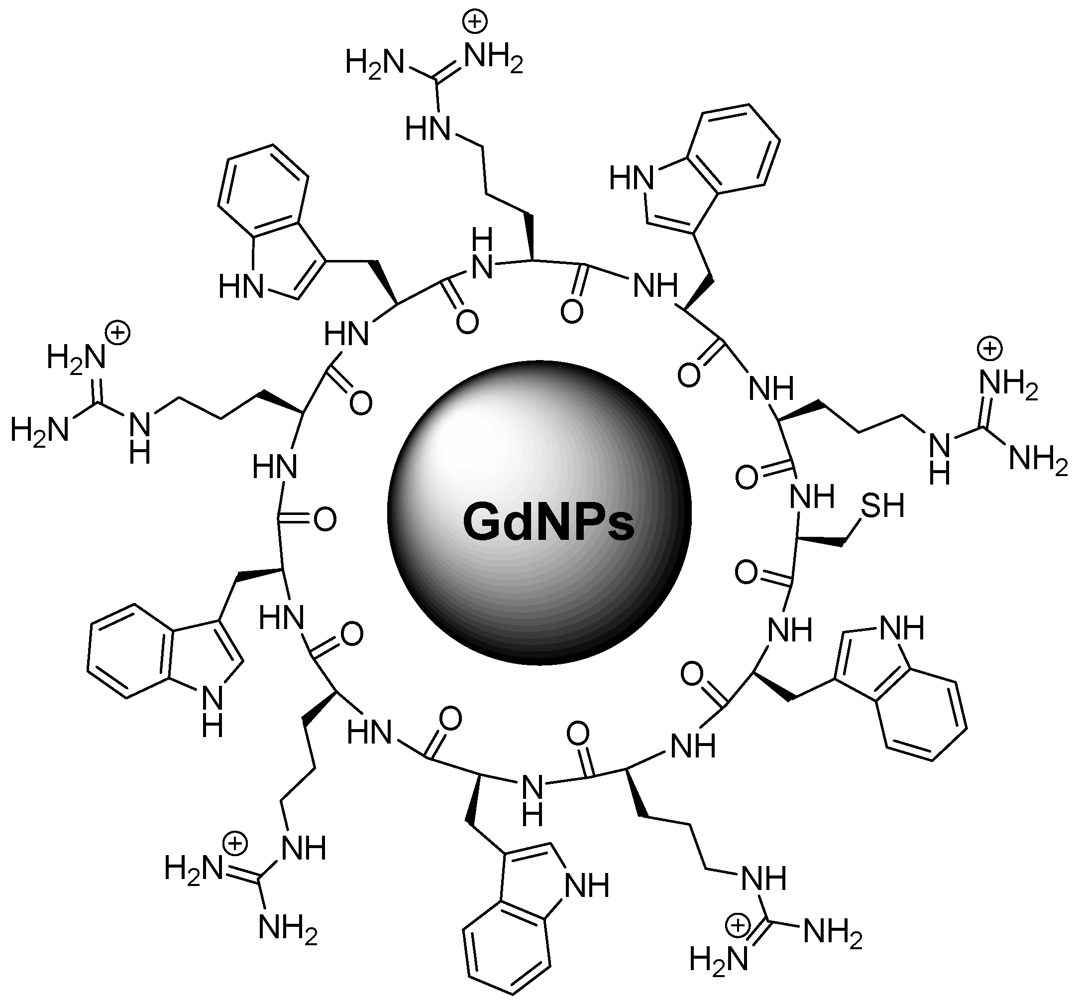 - Shirazi, A.N.; Park, S.E.; Rad, S.; Baloyan, L.; Mandal, D.; Sajid, M.I.; Hall, R.; Lohan, S.; Zoghebi, K.; Parang, K.; et al. Cyclic Peptide–Gadolinium Nanoparticles for Enhanced Intracellular Delivery. Pharmaceutics 2020, 12, 792. [Google Scholar] [CrossRef] [PubMed]