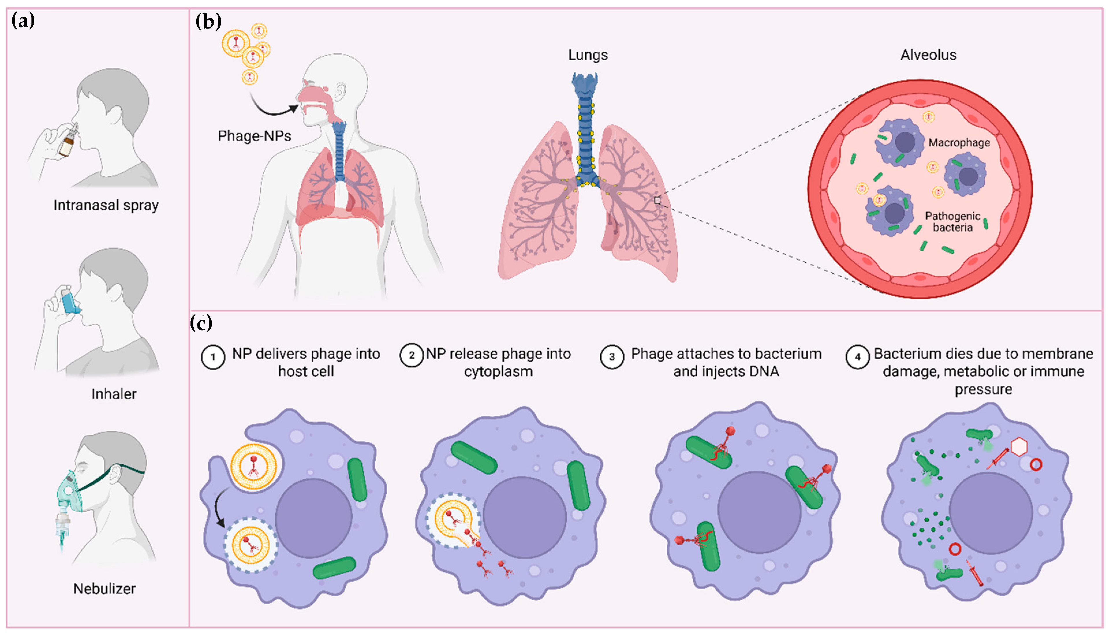 Chicago/Turabian StyleAlshehri, Abdullah A., Alhassan H. Aodah, Ibrahim A. Alradwan, Meshal K. Alnefaie, Majed S. Nassar, Ibtihal S. Alduhaymi, Ahmad M. Aldossary, Nojoud Al Fayez, Essam A. Tawfik, and Fahad A. Almughem. 2026. "Bacteriophages as Therapeutic Agents for Pulmonary Infections: From Biological Principles to Clinical Applications" Pharmaceutics 18, no. 3: 387. https://doi.org/10.3390/pharmaceutics18030387