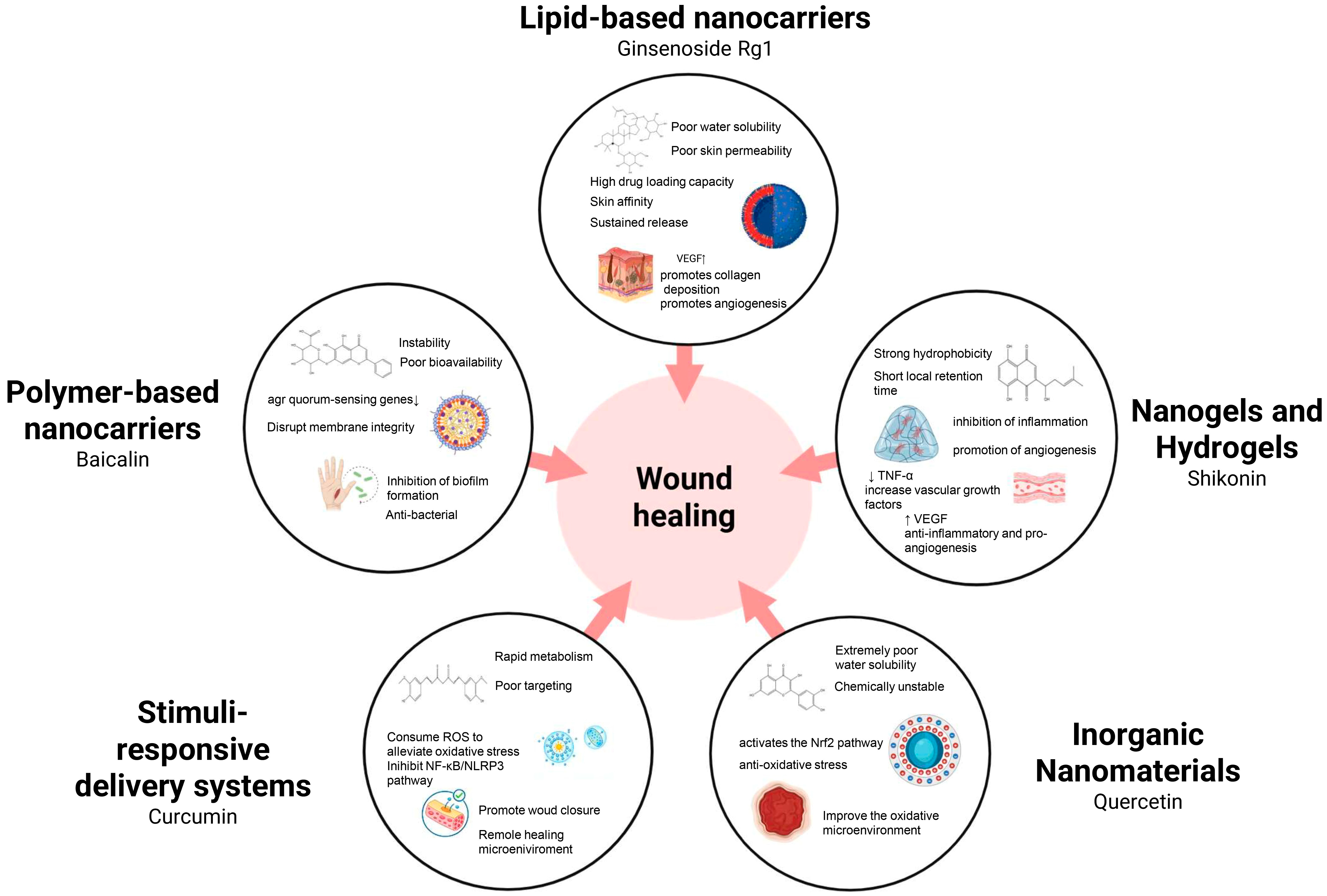 APA StyleRen, L., Zhao, Z., Zhang, T., Kou, M., Ma, X., Li, J., Lei, M., & Qiao, H. (2026). Advances in Nanotechnology-Assisted Delivery of TCM-Derived Bioactive Compounds for Wound Repair. Pharmaceutics, 18(4), 427. https://doi.org/10.3390/pharmaceutics18040427