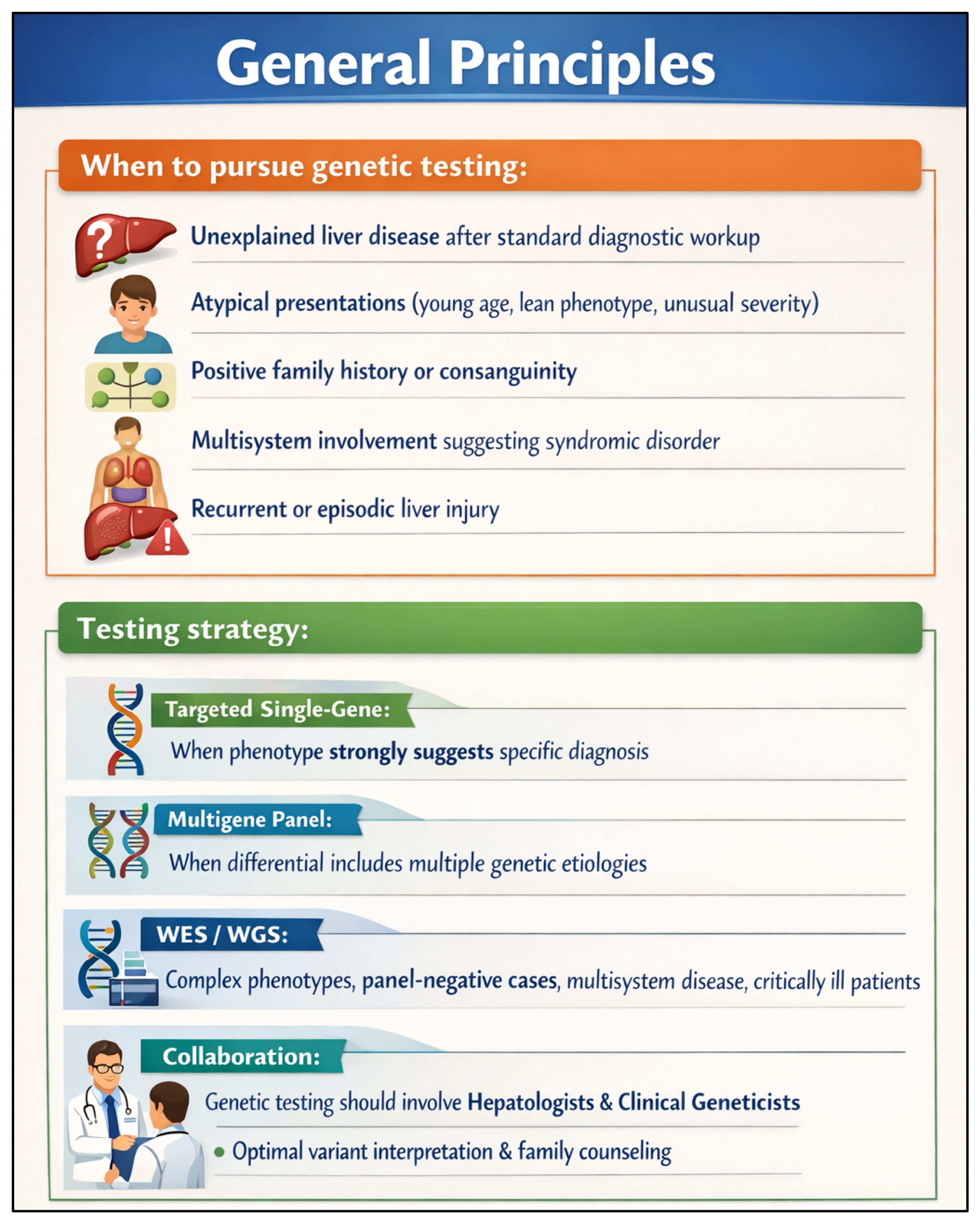 - Chung, D.H.; Zheng, M.; Bale, A.E.; Vilarinho, S. Hepatology Genome Rounds: An interdisciplinary approach to integrate genomic data into clinical practice. J. Hepatol. 2023, 79, 1065–1071. [Google Scholar] [CrossRef]