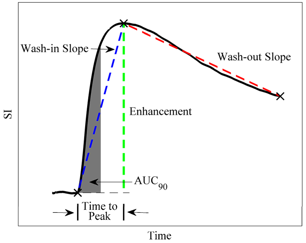 - Li, X.; Huang, W.; Yankeelov, T.E.; Tudorica, A.; Rooney, W.D.; Springer, C.S. Shutter-speed analysis of contrast reagent bolus-tracking data: Preliminary observations in benign and malignant breast disease. Magn. Reson. Med. 2005, 53, 724–729. [Google Scholar] [CrossRef]