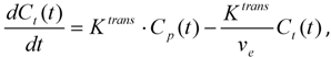 As Tofts et al. describes, if a homogeneous distribution of CA is assumed in both compartments, then the concentration change within the tissue compartment can be described by a linear first order ordinary differential equation: