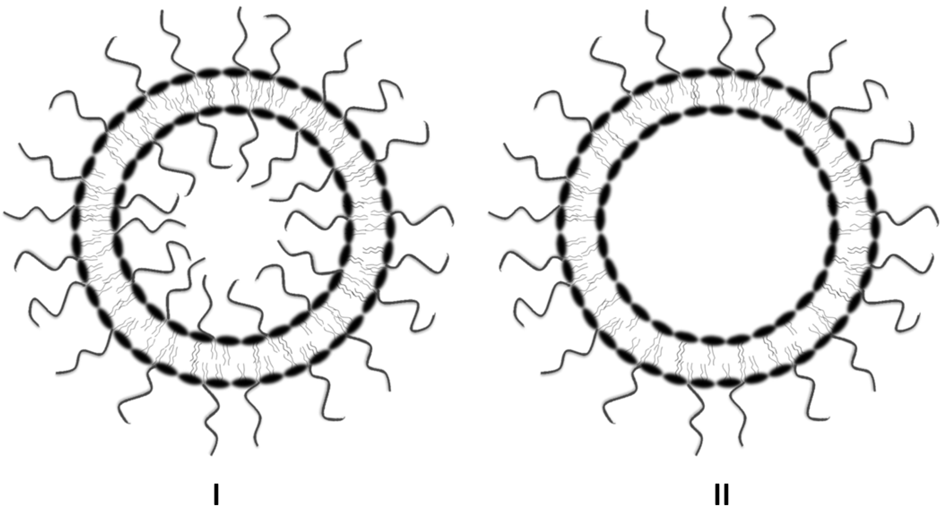 - Szleifer, I.; Gerasimov, O.V.; Thompson, D.H. Spontaneous liposome formation induced by grafted poly(ethylene oxide) layers: Theoretical prediction and experimental verification. Proc. Natl. Acad. Sci. USA 1998, 95, 1032–1037. [Google Scholar] [CrossRef]