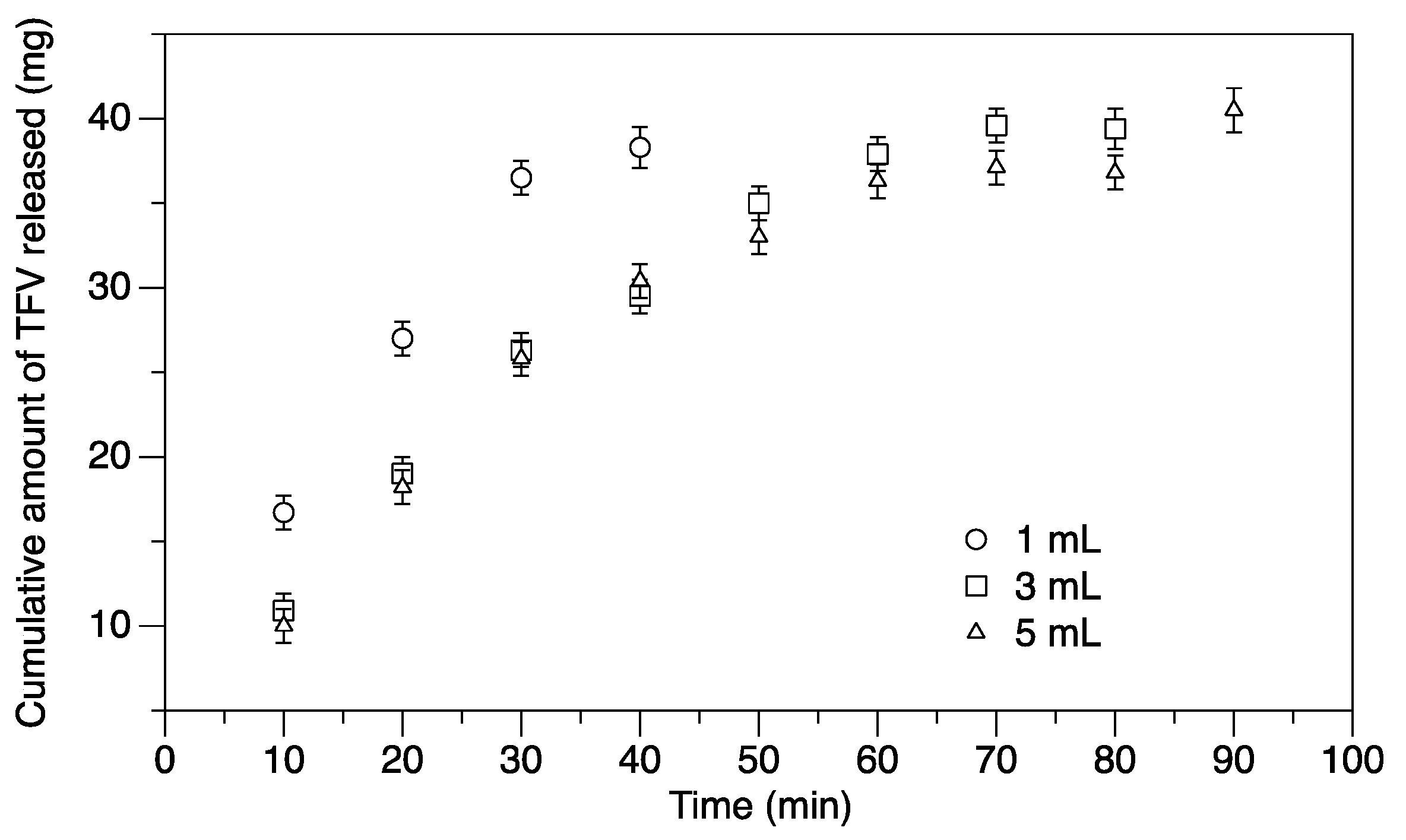 3.2. Release of TFV into Vaginal Simulant Fluid (VSF) and Semen Simulant Fluid (SSF)