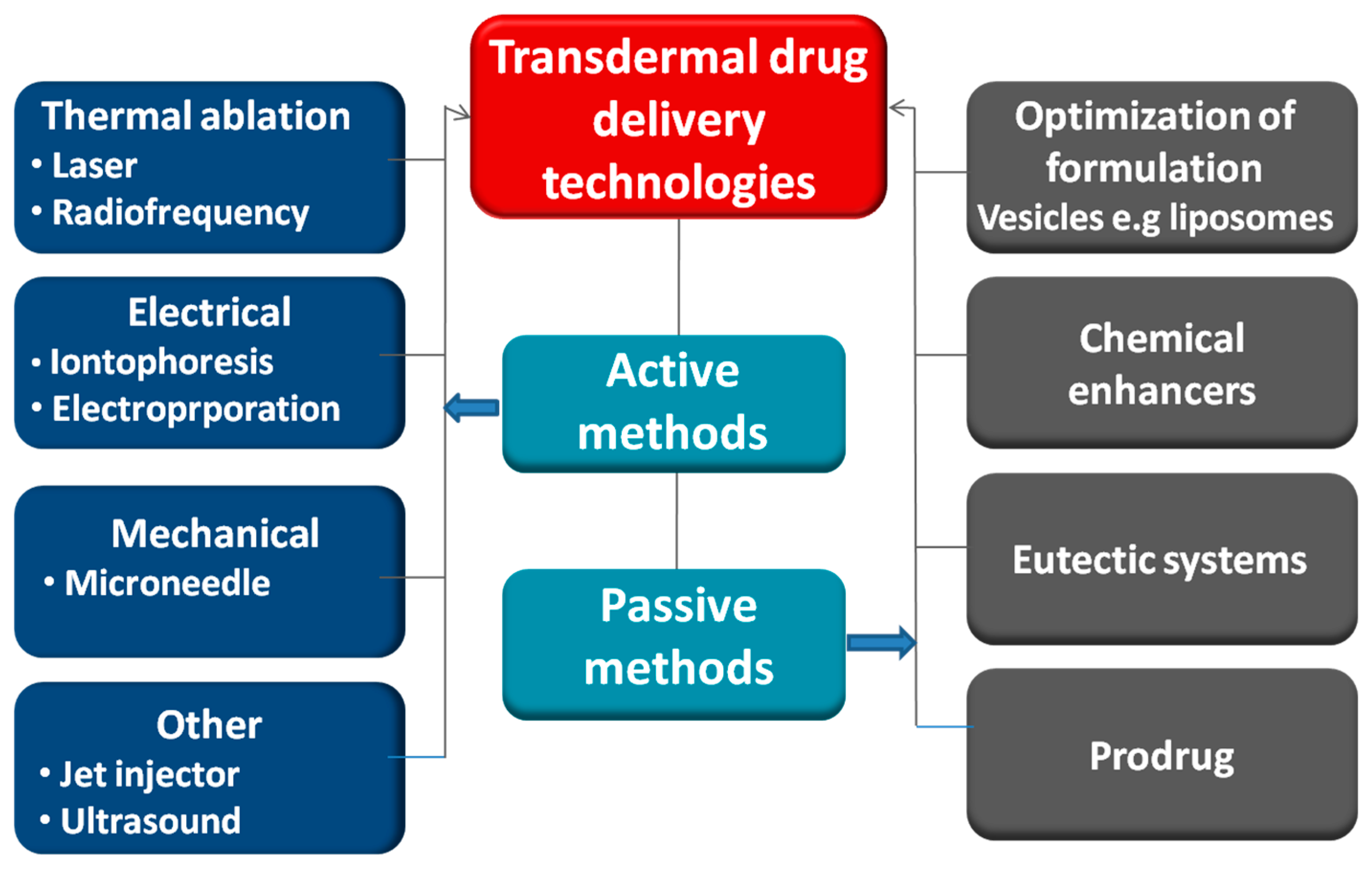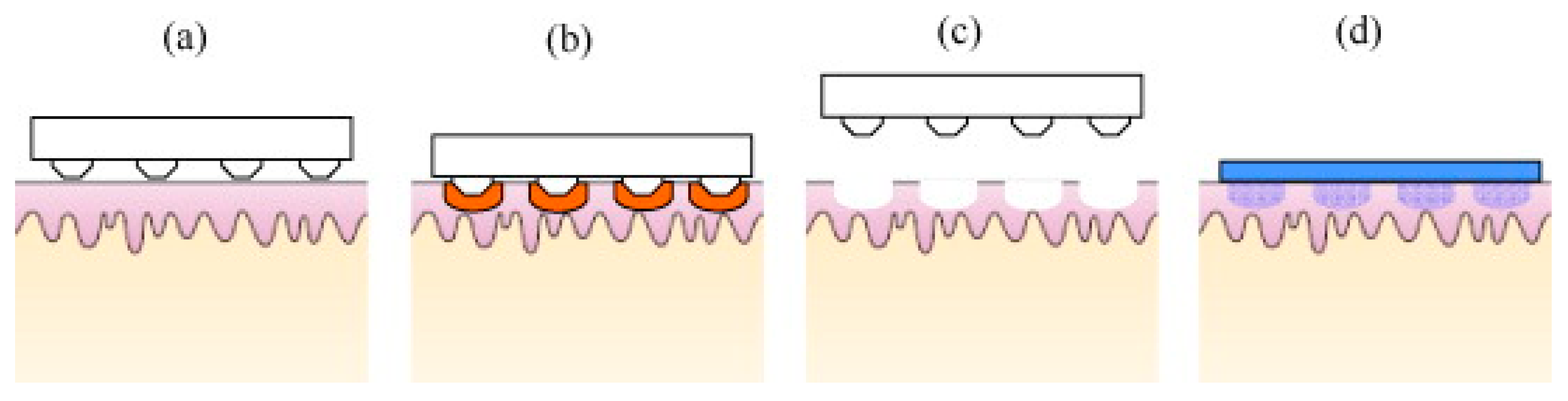 - Brown, M.B.; Traynor, M.J.; Martin, G.P.; Akomeah, F.K. Transdermal drug delivery systems: Skin perturbation devices. In Drug Delivery Systems; Springer: New York, NY, USA, 2008; pp. 119–139. [Google Scholar]