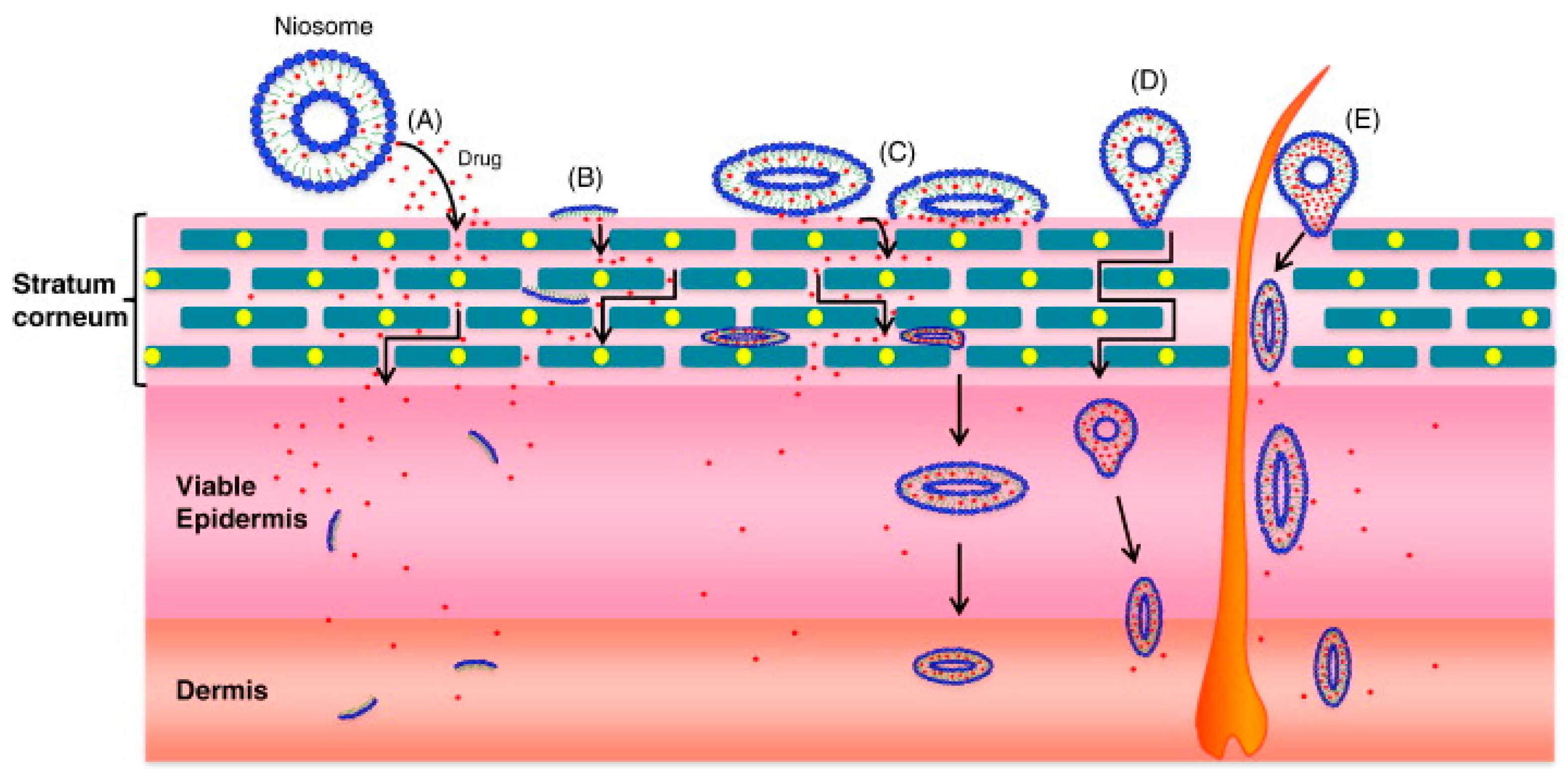- Marianecci, C.; Di Marzio, L.; Rinaldi, F.; Celia, C.; Paolino, D.; Alhaique, F.; Esposito, S.; Carafa, M. Niosomes from 80s to Present: The State of the Art. Adv. Colloid Interface Sci. 2014, 205, 187–206. [Google Scholar] [CrossRef] [PubMed]