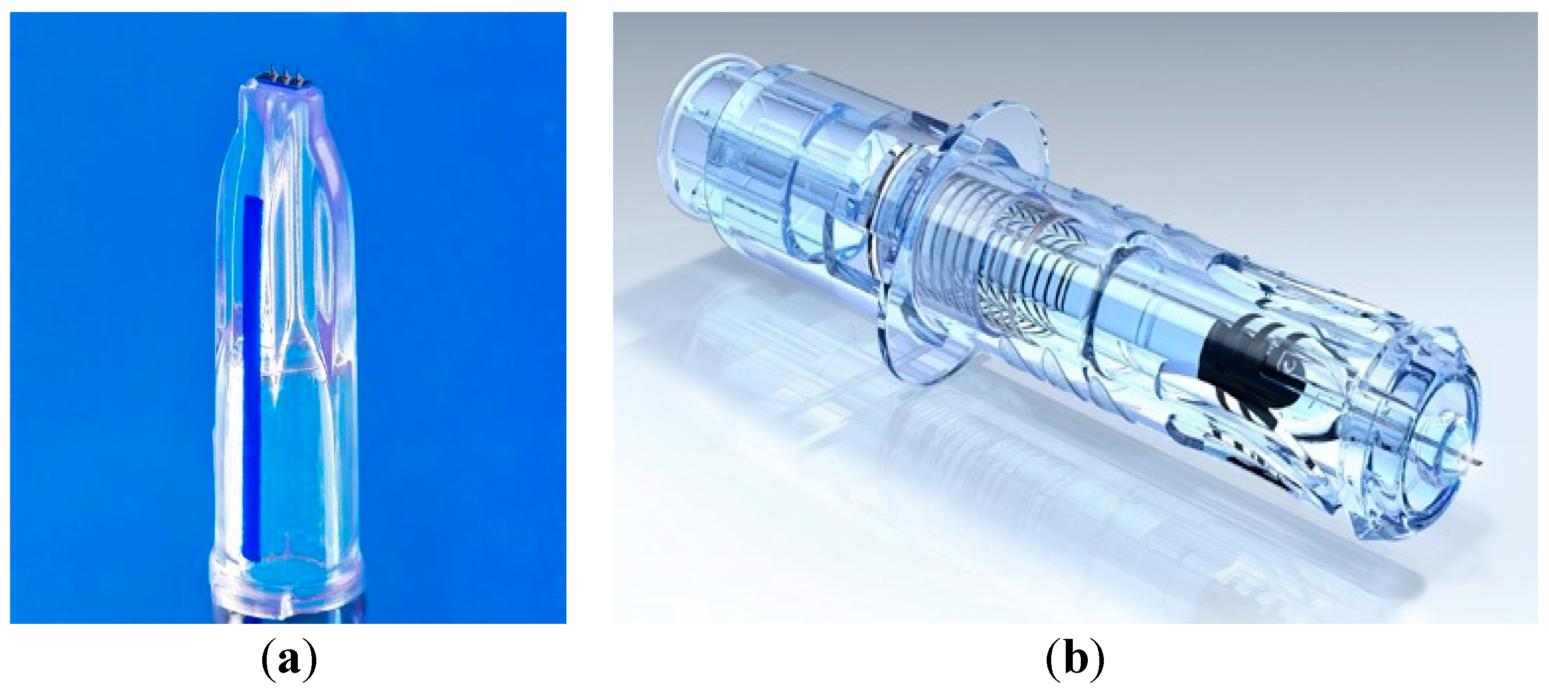 - Gupta, J.; Felner, E.I.; Prausnitz, M.R. Minimally Invasive Insulin Delivery in Subjects with Type 1 Diabetes using Hollow Microneedles. Diabetes Technol. Ther. 2009, 11, 329–337. [Google Scholar] [CrossRef] [PubMed]