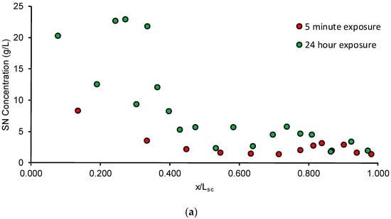 where Msc is the sum of the entire SC obtained through tape stripping. It was assumed that dermal absorption occurs passively through a pseudo-homogenous membrane. Since SN is a hydrophobic compound and previous work characterizing skin to be a homogenous membrane for lipids has been published [], this assumption was considered appropriate. These were then used to fit Equation (4) of [] using the curve-fit toolbox of Matlab R2010a (Natick, MA, USA) to derive estimates on the partition coefficient Ksc/v between the SC and the vehicle and the lag time tlag for chemical to penetrate the SC under necessary assumptions.