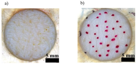 Pictures of the skin surface with (a) or without (b) hair follicle plugging.