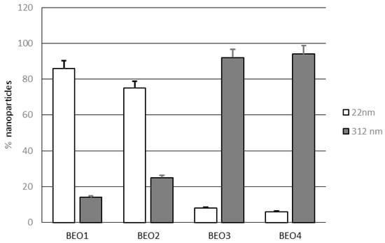 Percentages of nanoparticles with different mean size (22 and 312 nm) in lipid nanoparticles BEO1–4.