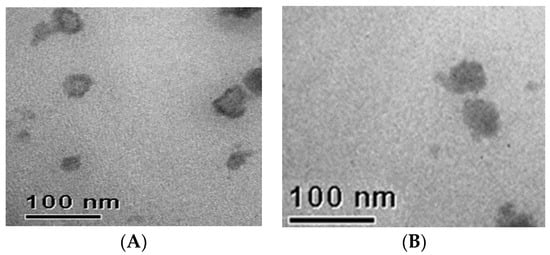 Transmission electron microscopy (TEM) images of solid lipid nanoparticles A (A); and lipid nanoparticles CEO3 (B).