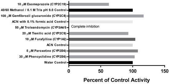 Effect of direct-acting chemical inhibitors on the loss of CRV431 (1 μM) by human liver microsomes.