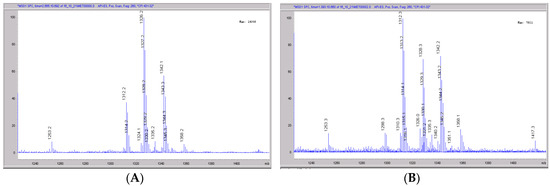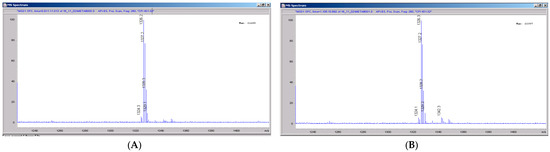 Mass spectral scans of rat liver extracts incubated with CRV431. Rat (Sprague-Dawley) liver microsomes (1 mg/mL) were incubated with 1 μg/mL CRV431, and extracts were removed for analysis by ESI-LCMS at 20 min (panel (A), mass spectral scan from 1260–1460 m/z) and 80 min (panel (B), mass spectral scan from 1260–1460 m/z).