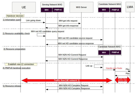 Operation procedure of the proposed IEEE 802.21 MIH functionality assisted by PMIPv6.