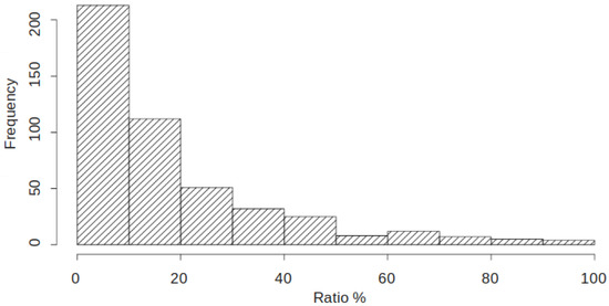 The distribution of the ratio (in percentage values) between softcap and hardcap is shown in Figure 4 and Figure 5.