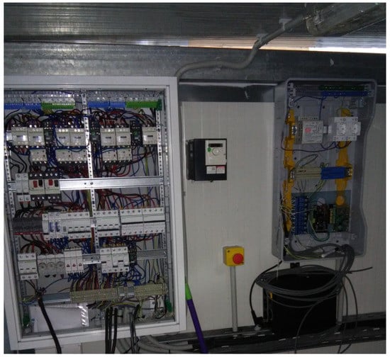 During the implementation and testing of the presented architecture, several issues had to be addressed to allow uninterrupted and unsupervised operation of the whole infrastructure, and produce quality results. Initially, since implementation of the presented composting architecture is an academic endeavor, the design and construction of the frame (Figure 4), along with the selection and mounting of sensors and actuators (Figure 5 and Figure 6), had to be revisited several times. In this notion, the initial selection of sensors, motors, and mounting frames had to be rethought, and several parts of the frame had to be redesigned to achieve an optimal result. Figure 4 illustrates the final real-life implementation of the composting frame, and Figure 5 illustrates the final mounting of the temperature and humidity sensors. Figure 7 illustrates the electrical infrastructure.