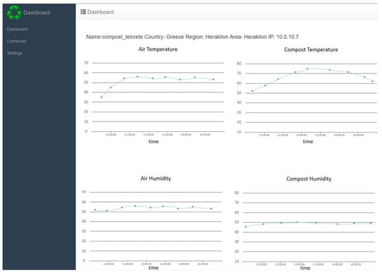 The IoT gateway is deployed at the edge-abstraction layer of our architecture. The gateway utilizes the Liota open-source IoT gateway agent created by VMWare []. The Liota agent aggregates all sensor data and sends them to the cloud composting service through an MQTT (Message Queuing Telemetry Transport) communication channel over Secure Sockets Layer (SSL) protocol. Additionally, it performs scheduled tasks sent by the composting service, such as stirring the material and ventilating the frame, by instructing the PLC module. Finally, it exposes a middleware/API to allow remote management and manipulation of the actuators by the composting cloud service. A lightweight dashboard is also available for on-site management and data logging.