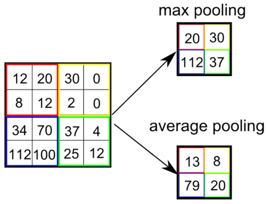 Then, a max-over pooling is applied to this feature map for the purpose of obtaining a vector of fixed length for classification. As for the pooling operation, it is adopted to extract maximum value from the matrix (feature map). After each convolution, a max-pool layer is added to extract the most significant elements in each convolution and then they are turned into feature vectors. It is common to periodically insert a pooling layer in-between successive Conv layers in a ConvNet architecture, which can progressively reduce the spatial size of the representation so as to reduce the amount of parameters and computation in the network, thus controlling the overfitting. Two common pooling operations, max pooling and average pooling, are shown in Figure 2. Max pooling chooses the max value in the filter as the new value in the new matrix while average pooling adopts the average value of all the numbers existing in the filter.