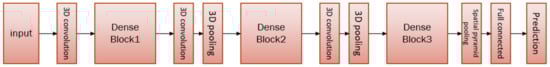 In our model, to make better use of 3D convolution and 3D pooling, we take the multiple densely connected dense blocks. More dense blocks will cause the network to become deeper, which will increase the parameters and complexity of the network. On the contrary, if the selected dense block is too small, the number of layers of the network will be reduced, which will affect the accuracy of the model.