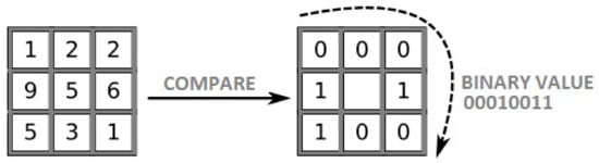 where v0, v1, …, and vp−1 represent the values of the corresponding neighbors of the central pixel, whereas vc is the value of the central pixel.