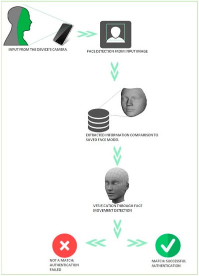 The human face plays an important role in daily social interaction. Face recognition is a natural process for humans. Even newborn babies have the ability to differentiate between known faces []. How hard could it be for computer devices? This question sets the foundation of the field of automatic face recognition, one of the most researched topics in computer vision and pattern recognition. In addition to applications related to identification and verification, such as access control and surveillance, face recognition has been useful in human-computer interaction, virtual reality and computer entertainment []. A study from Juniper Research [] found that there would be a rapid growth in biometric authentication usage, with voice and facial recognition leading the way. The study predicts that biometric authentication usage would grow from 190 million mobile devices in 2016 to 600 million by 2021. Because of the simpler hardware implementation for voice and face recognition, it is predicted to overcome the usage of fingerprints for authentication. Furthermore, authentication by the use of multiple biometrics is predicted. Compared to other biometric systems based on fingerprint or iris recognition, face recognition has the advantage of being a non-intrusive process. It is a visual pattern recognition problem, where the face, being a three-dimensional object which is subject to lighting variations, pose variation and other factors, should be identified based on acquired images. Advancements in photographic devices and their presence in mobile devices have allowed further exploration of this problem. The aforementioned techniques introduced face recognition as a way of smartphone authentication; nevertheless, these techniques were proven vulnerable when used in real life scenarios. One of the vulnerabilities can be that in the most current implementations, a sufficiently high-resolution face image displayed on another mobile device will be enough to circumvent security measures and bypass the authentication. “Open With Your Face” [] is the technology provided by Samsung on the next generation of Galaxy to unlock the phone using face recognition. The user raises the phone as if taking a selfie to use face recognition. This technique is a fast and effortless way to unlock the Galaxy 8 or S8+. However, using only frontal face images for authentication purposes can no longer be considered secure under the assumption of the easy availability of frontal snapshots of the respective device owners from social networks or other media. Back in 2011, Google added a “Face Unlock” system to Android 4.0 [], and it had the same picture vulnerability that Samsung’s solution has today. In Android 4.1, Google’s Face Unlock added a “liveness check” that attempted to defeat the photo vulnerability by requiring the user to blink. This too was bypassed (rather hilariously) by grabbing a photo of someone, poorly Photoshopping a second copy of the picture with a set of closed “eyelids”, and then switching between the “eyes open” and “eyes closed” pictures when the face unlock asks the user to blink. Because of the picture vulnerability, different other techniques for smartphone authentication requiring less user effort have been proposed. Gestures provide a faster and more convenient method of authentication compared to a complex password. Hong et al. [] proposes Waving Authentication (WA), which is a motion gesture authentication system based on the accelerometer. WA utilizes eight distinguishing features hiding in the acceleration traces of motion gestures and exploits one-class Support Vector Machine for classification. It is insusceptible to shoulder-surfing attacks. Because gestures should be easy to remember, it is possible for users to record one gesture for every unique password. However, remembering which password corresponds to which gesture could get complicated as the number of unique passwords increases. Another similar suggestion is presented by Shrestha et al. []. They present the Wave-to-Access permission-granting approach that can be used to protect any sensitive mobile device service. It captures the user’s intent to access the service via a lightweight hand waving gesture. This gesture is very simple, quick and intuitive for the user, but would be very hard for the attacker to exhibit without the user’s knowledge. They also present the design and implementation of a hand-waving gesture recognition mechanism using an ambient light sensor, already available on most mobile devices. The results of Arif et al. [] showed that the gesture techniques where more error prone than the digit lock technique.
