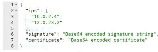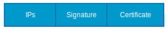 Figure 2 depicts a typical packet sent from the detection engine to the SDN controller. A typical C-to-C packet sent by the detection engine to the SDN controller is comprised of three sections i.e., data, certificate and signature (see Figure 2). The data section contains a list of IP addresses and the corresponding action that must be taken. The certificate section contains a certificate along with the public key. The signature section contains a message digest signed with the private key of the attached certificate.
