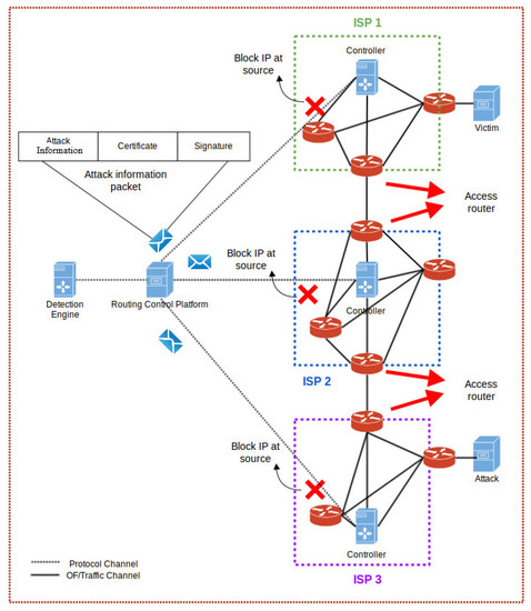 - François, J.; Aib, I.; Boutaba, R. FireCol: A collaborative protection network for the detection of flooding DDoS attacks. IEEE/ACM Trans. Netw. (TON) 2012, 20, 1828–1841. [Google Scholar] [CrossRef]