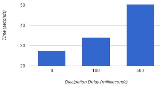In order to evaluate the dissemination delays of attack definitions, we generated 100 different payloads with attack definitions and forwarded each payload to 100 connected controllers in three different modes. i.e., Burst mode, with 100 ms delay (the delay added between two different attack definitions), and with 500 ms delay. Figure 11 shows the results. In burst mode i.e., with 0 delay between attack definitions, it took approx. 28 s to dissipate all the flow policy to 100 connected controllers. With a delay of 100 ms, it took approx. 34 s and with a delay of 500 ms it took approximately 50 s.
